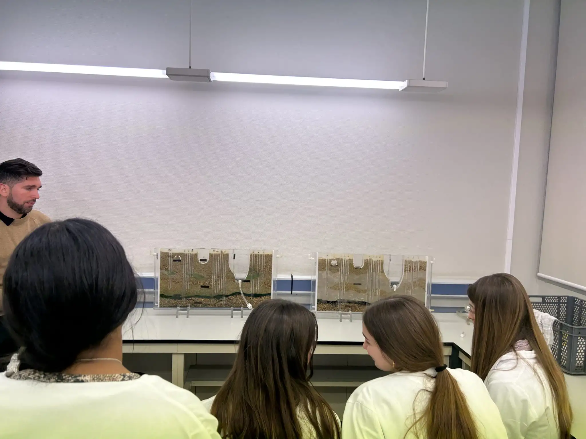 En la segona practica van poder comprovar, mitjançant models a escala, la importància de mantindre les aigües subterrànies lliures de contaminants ja que són la nostra principal font d’aigua potable en un futur pròxim.