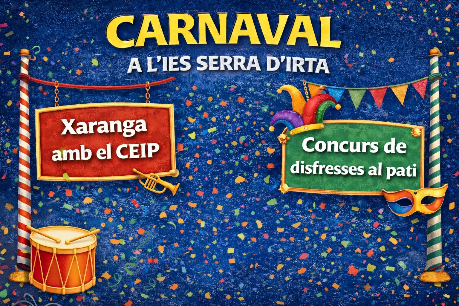 L’IES Serra d’Irta ha viscut una jornada molt especial amb motiu del Carnaval. D’una banda, una part del nostre alumnat ha eixit al carrer per participar amb la xaranga i el CEIP Lo Campanar, omplint el poble de música, disfresses i bon ambient.