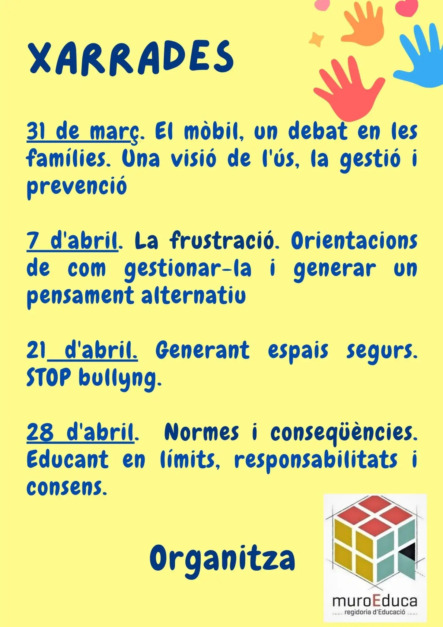 - 28 d’abril – Normes i conseqüències: educar en límits, responsabilitats i consens