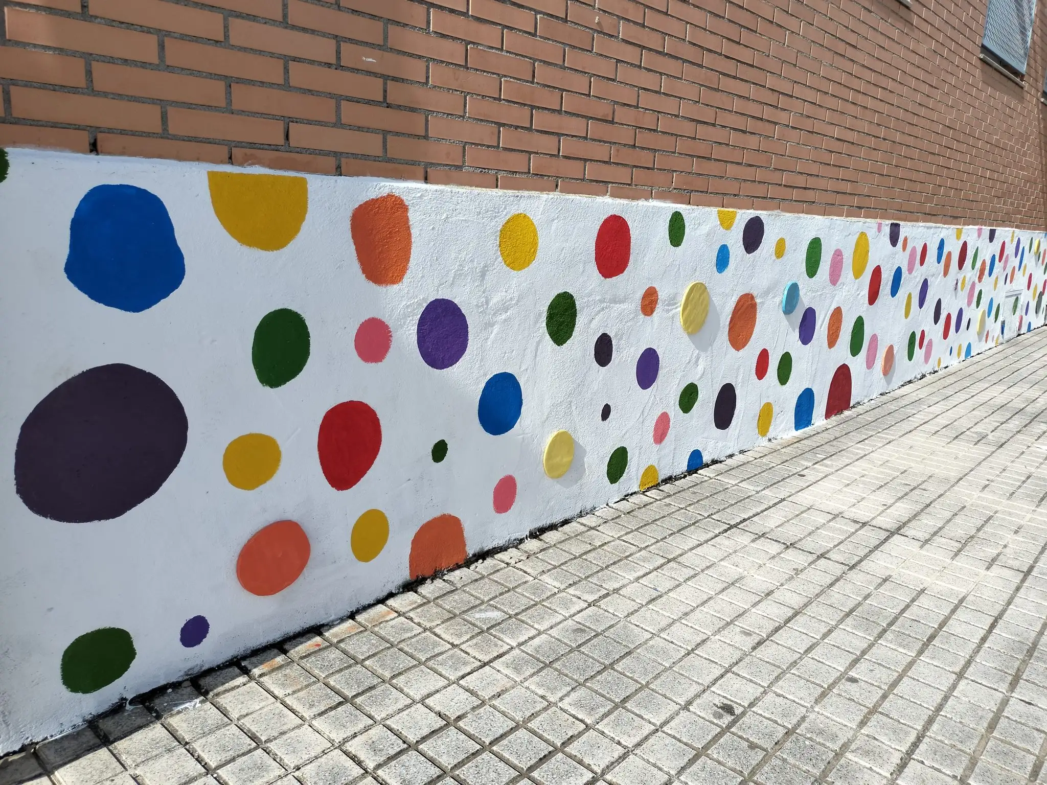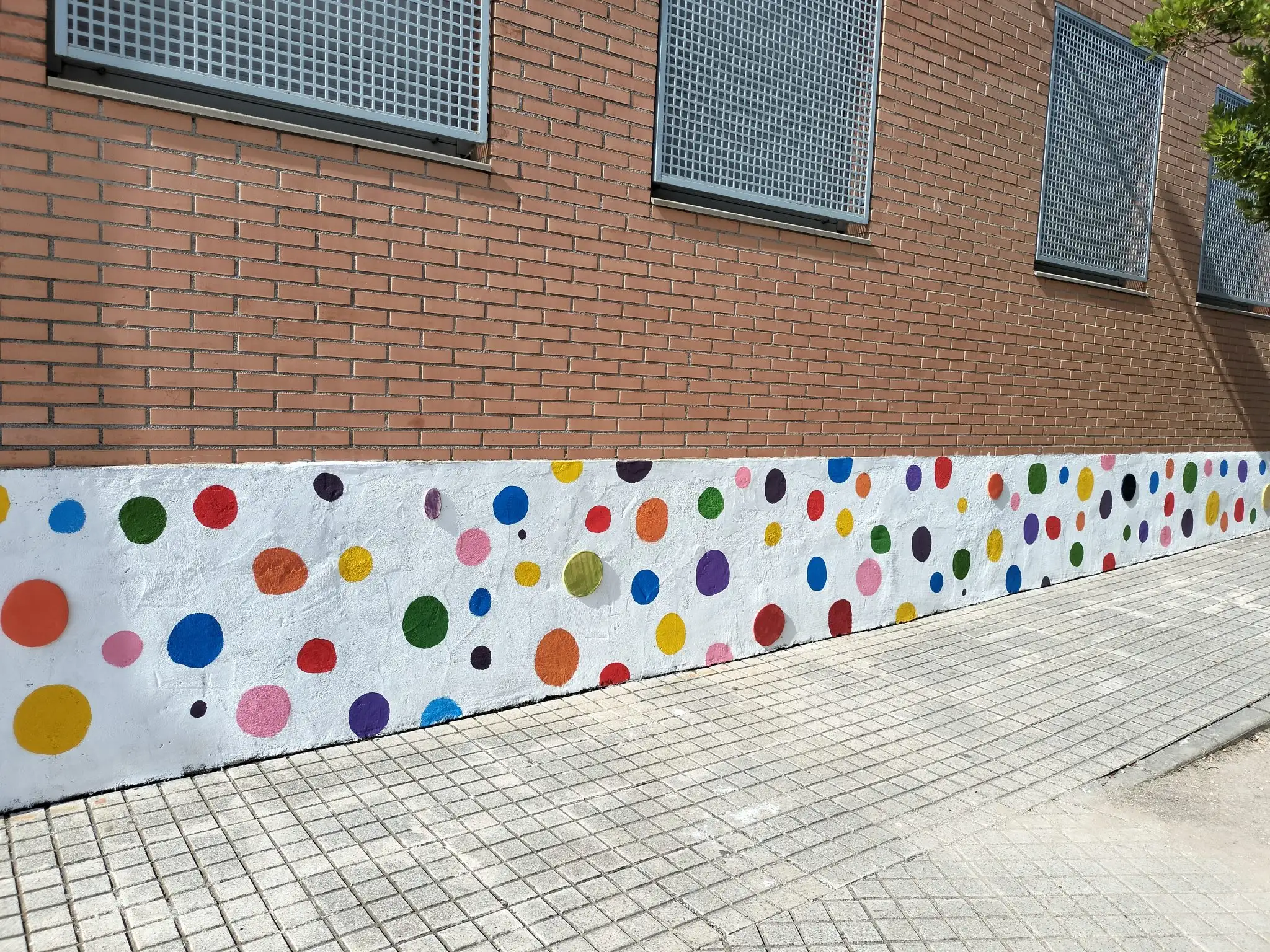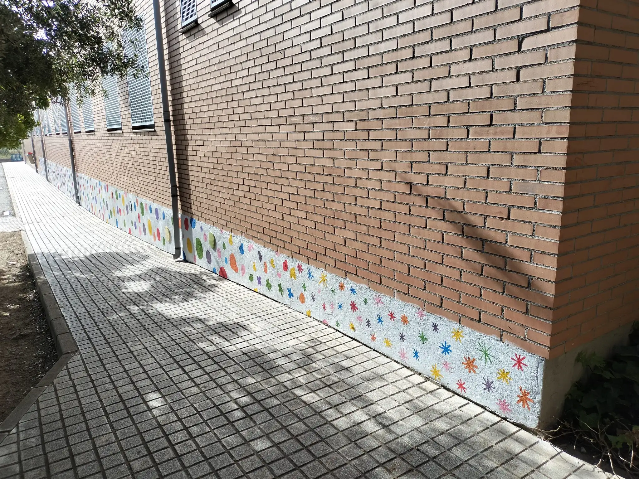 El alumnado de la asignatura optativa de 4.º del Proyecto Interdisciplinario ha llevado a cabo una intervención artística a los bajos de hormigón del centro, transformando este espacio en un elemento visual vive y pleno de significado. La decoración parte de una composición creada íntegramente por ellos mismos, basada en formas circulares que, de manera progresiva y orgánica, evolucionan hasta convertirse en estrellas, generando un ritmo visual que invita a observar y recorrer el espacio con una nueva mirada.