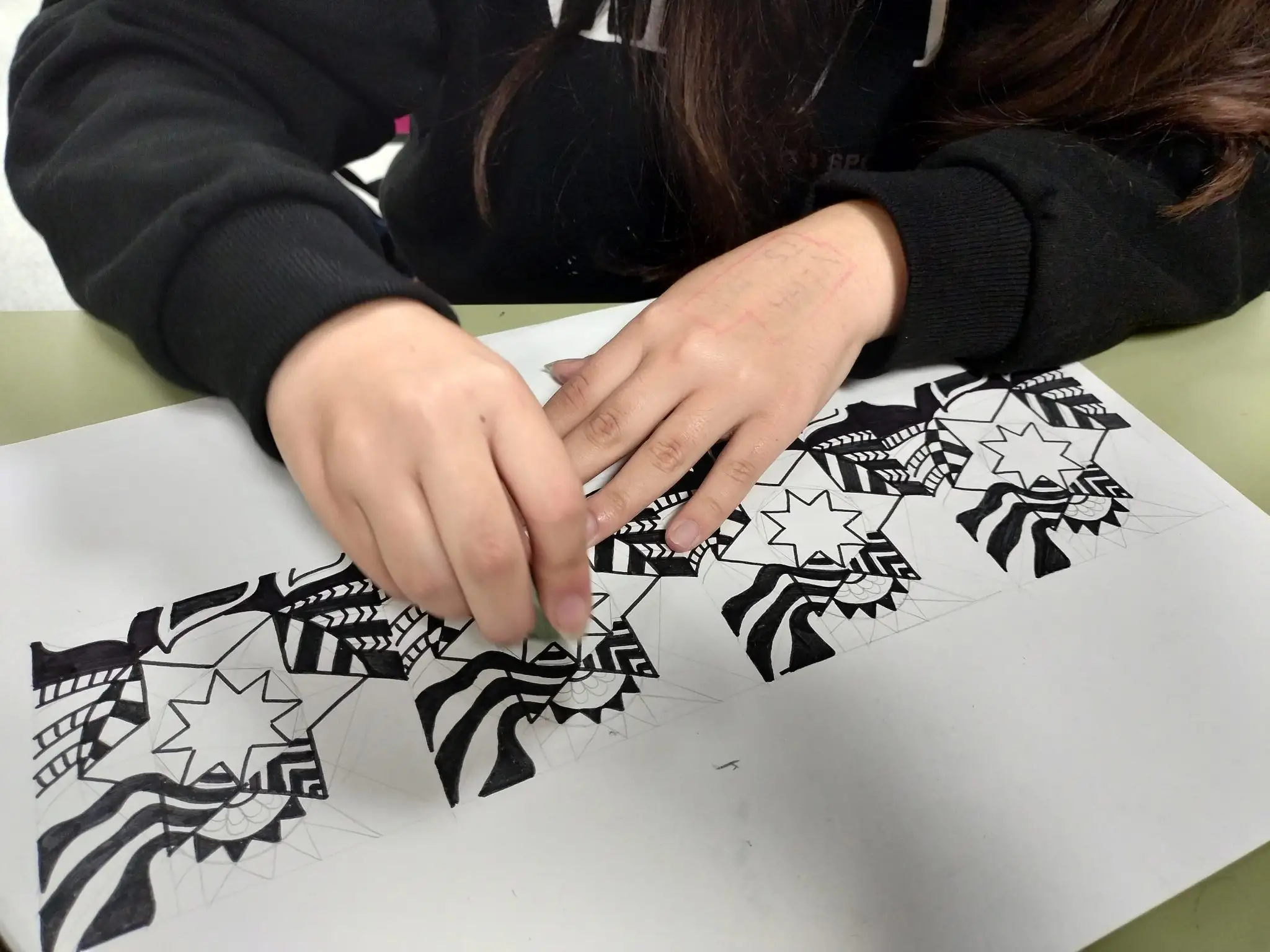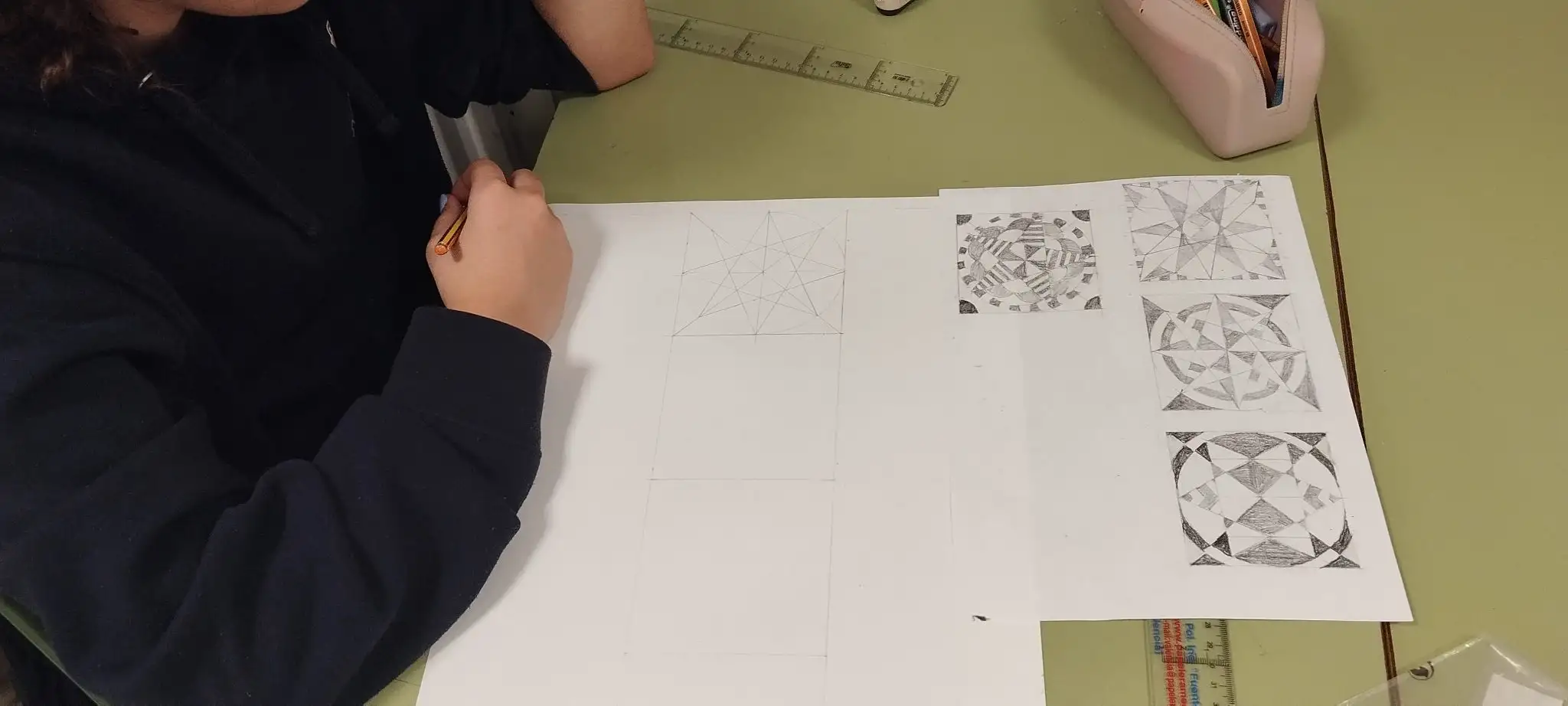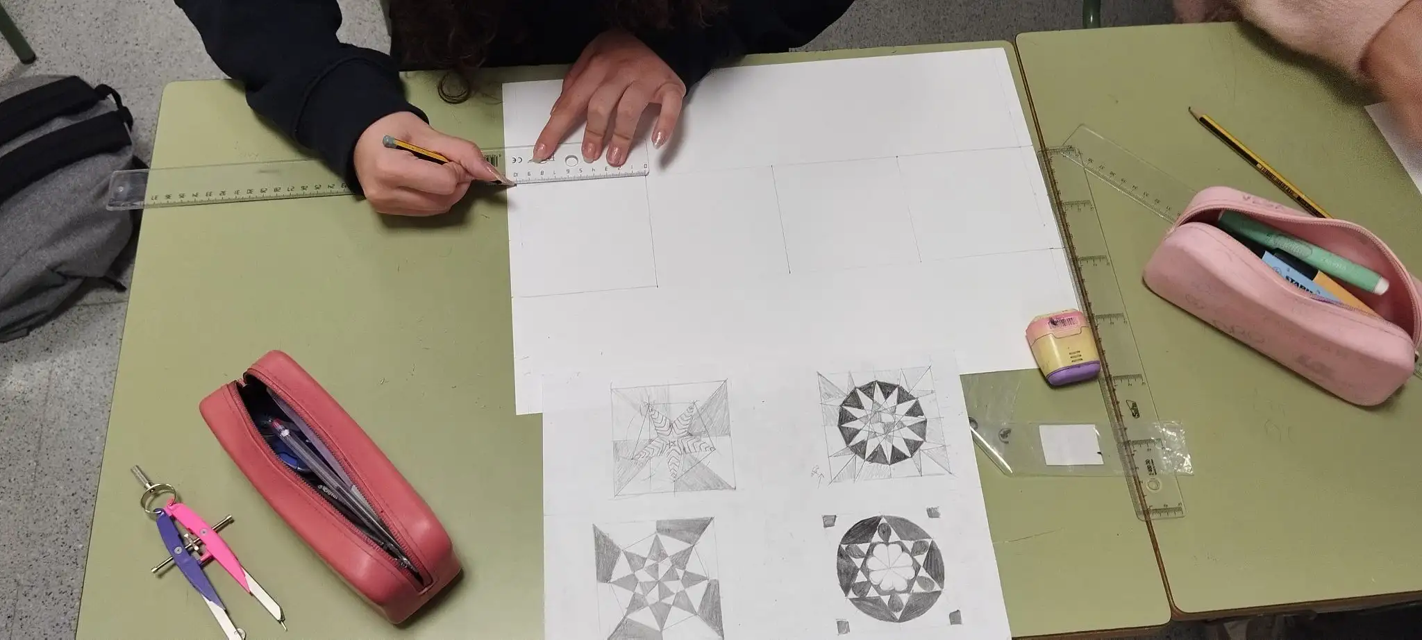 El resultat són treballs originals, equilibrats i creatius, que combinen la rigorositat de la geometria amb la llibertat expressiva del disseny. A través d’aquesta activitat, l’alumnat ha pogut reconnectar amb conceptes matemàtics d’una manera plàstica i visual, descobrint com la geometria pot esdevenir una eina per crear bellesa i expressar-se artísticament.