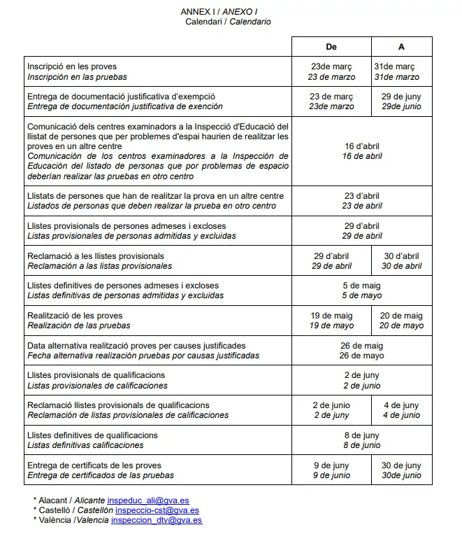 Ací podeu veure el resum de dates d’esta convocatòria: