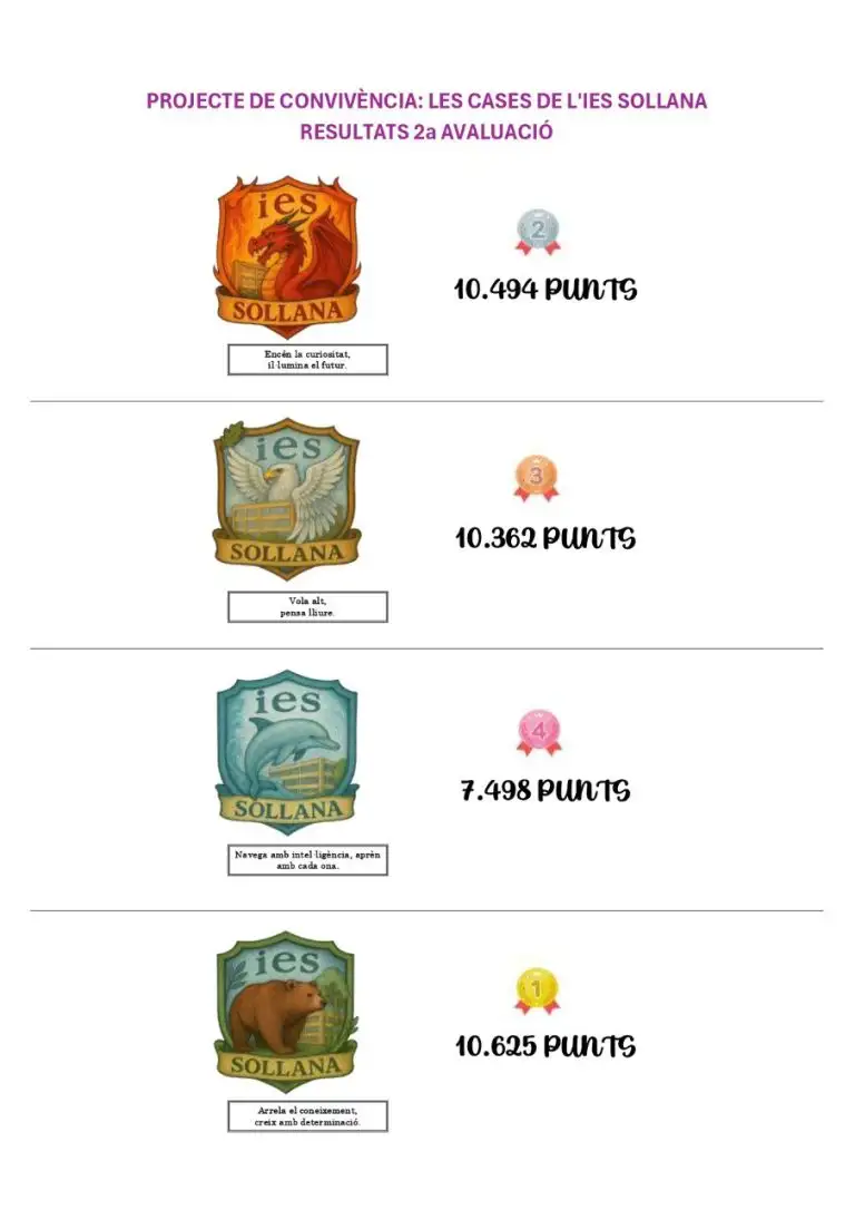 Continuant amb el Projecte de Convivència “Les cases de l’IES Sollana”, volem compartir amb vosaltres el rànquing final corresponent a la segona avaluació. Aquest rànquing reflecteix el treball, l’actitud i la implicació de l’alumnat al llarg de tot el trimestre, i posa en valor l’esforç sostingut de cada casa per contribuir positivament a la convivència … Llegir més