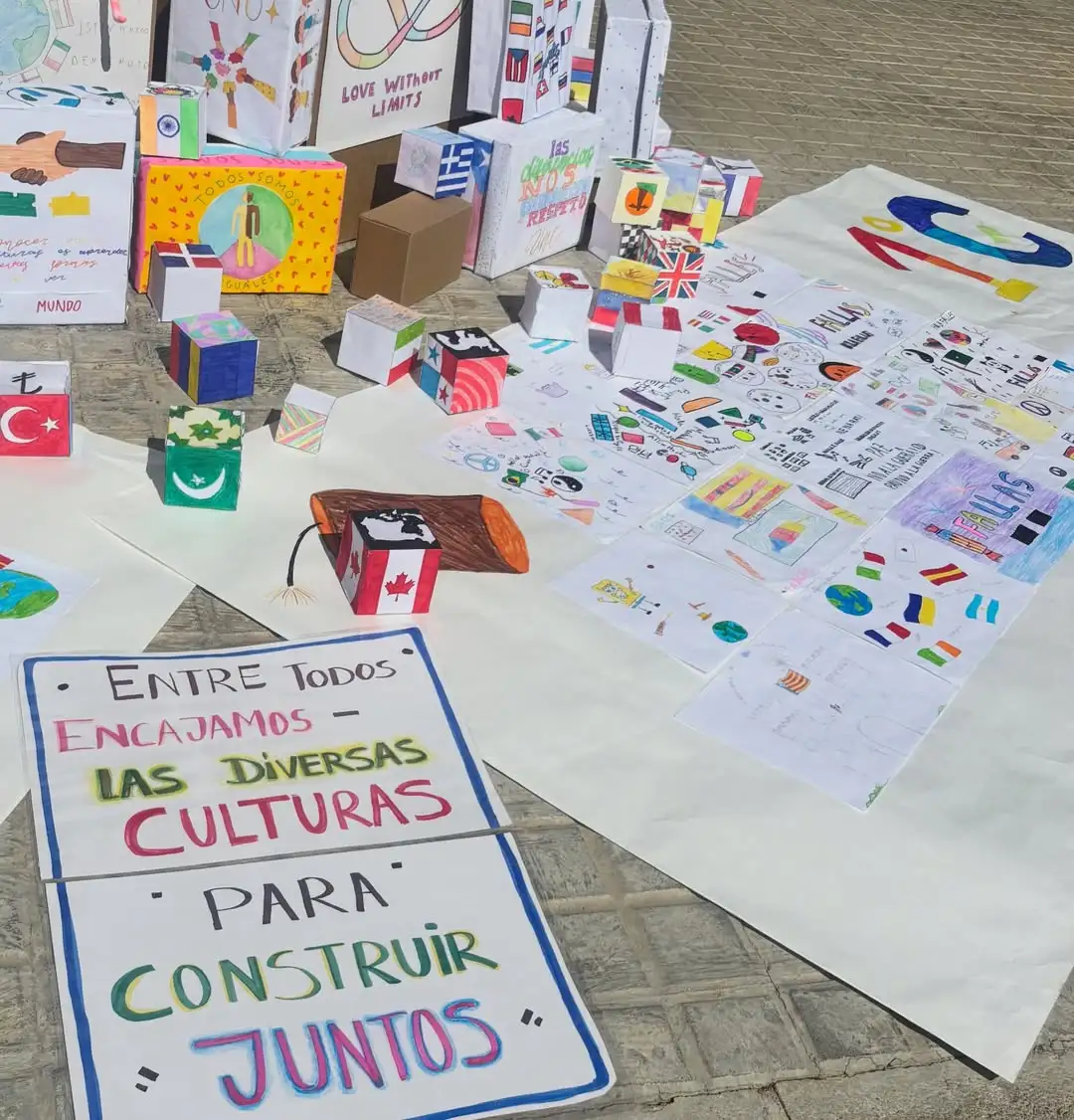 Una part del projecte es va desenvolupar a les tutories de 1r d’ESO, on les tutores van guiar debats sobre la convivència. L’alumnat va plasmar aquestes idees en dissenys inspirats en patrons de cultures de tot el món. Totes aquestes aportacions van donar forma a la gran catifa visual que configura la nostra Falla Intercultural.