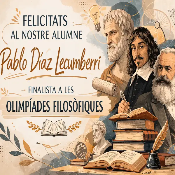 Volem felicitar el nostre alumne, Pablo Díaz, i la seua professora, Estela Juanilla, pel gran treball realitzat. Gràcies al seu esforç, dedicació i passió per la filosofia, Pablo ha aconseguit ser finalista a les Olimpíades Filosòfiques. Tot un orgull per al nostre centre! Molta sort en la següent fase, Pablo!