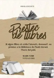 • Préstec de llibres: la biblioteca ofereix servei de préstec a tot l’alumnat del centre i també recull suggeriments de llibres que els estudiants vulguen llegir.