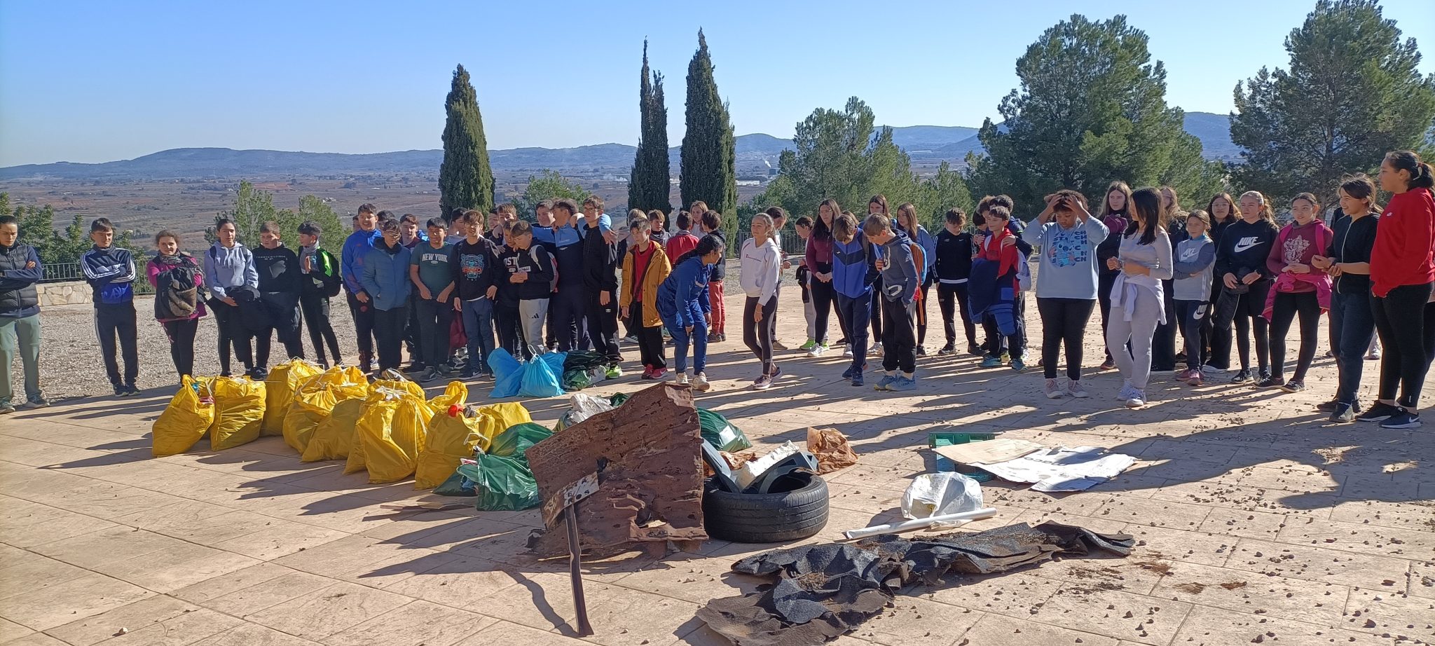 L’activitat va començar amb una xerrada introductòria on es va analitzar el problema de la gran quantitat de residus que generem i que, lamentablement, molt sovint, trobem abandonats en la naturalesa. Després ens vam desplaçar a peu fins l’ermita on ens vam organitzar en grups de 10 persones equipades amb guants i bosses de 3 colors. Cada equip, distribuït per una zona de l’entorn de l’ermita, tenia un representant amb unes plantilles del ministeri, que s’encarregava d’apuntar el tipus de residu recollit per fer una estadística a nivell estatal.