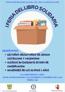 - 10:00 a 13.30h. Disposición puestos de venta y donación de libros. (Porche)