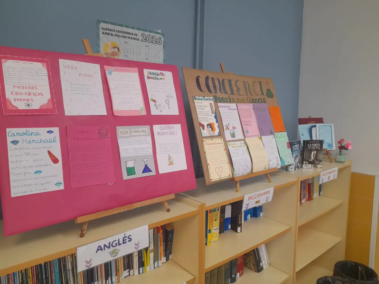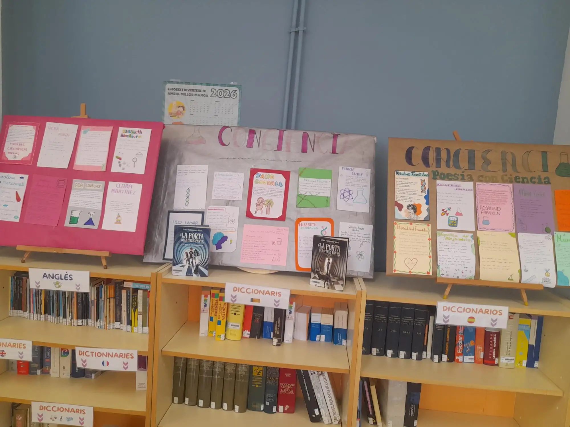 Desde la biblioteca se ha impulsado el proyecto Conciencia, en el que ha participado alumnado de 2º de ESO y en el que se ha preparado una mini-exposición que se puede visitar en la biblioteca del centro. En ella, los estudiantes han investigado y creado poemas inspirados en una mujer científica y en su investigación o descubrimiento.