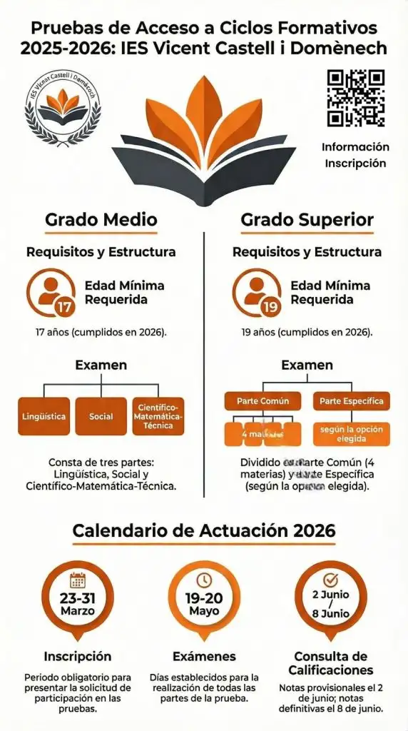 Informamos a toda la comunidad educativa que el 18 de febrero de 2026 se publicó la Resolució 13 de febrero de 2026 que regula las pruebas para la obtención del título de técnico o técnica y técnico o técnica superior de Formación Profesional.