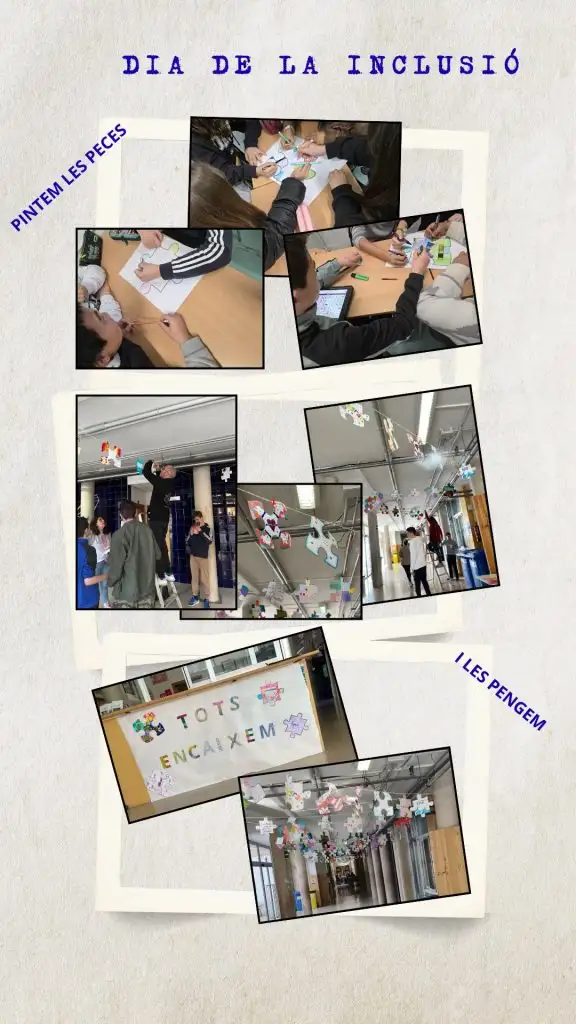 El dia 27 de febrer celebrem en el nostre IES el Dia de la Inclusió. Durant tot el mes, en les tutories, es va fer una treball de sensibilització i l’alumnat de 1r a 4t d’ESO va elaborar peces de puzle amb el lema “TOTS ENCAIXEM”.🧩✨