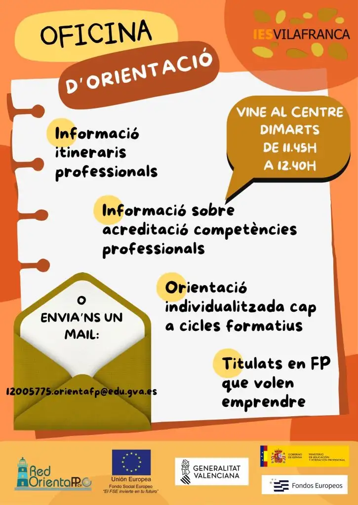 Pots visitar-nos o posar-te en contacte en  12005775.orientafp@edu.gva.es