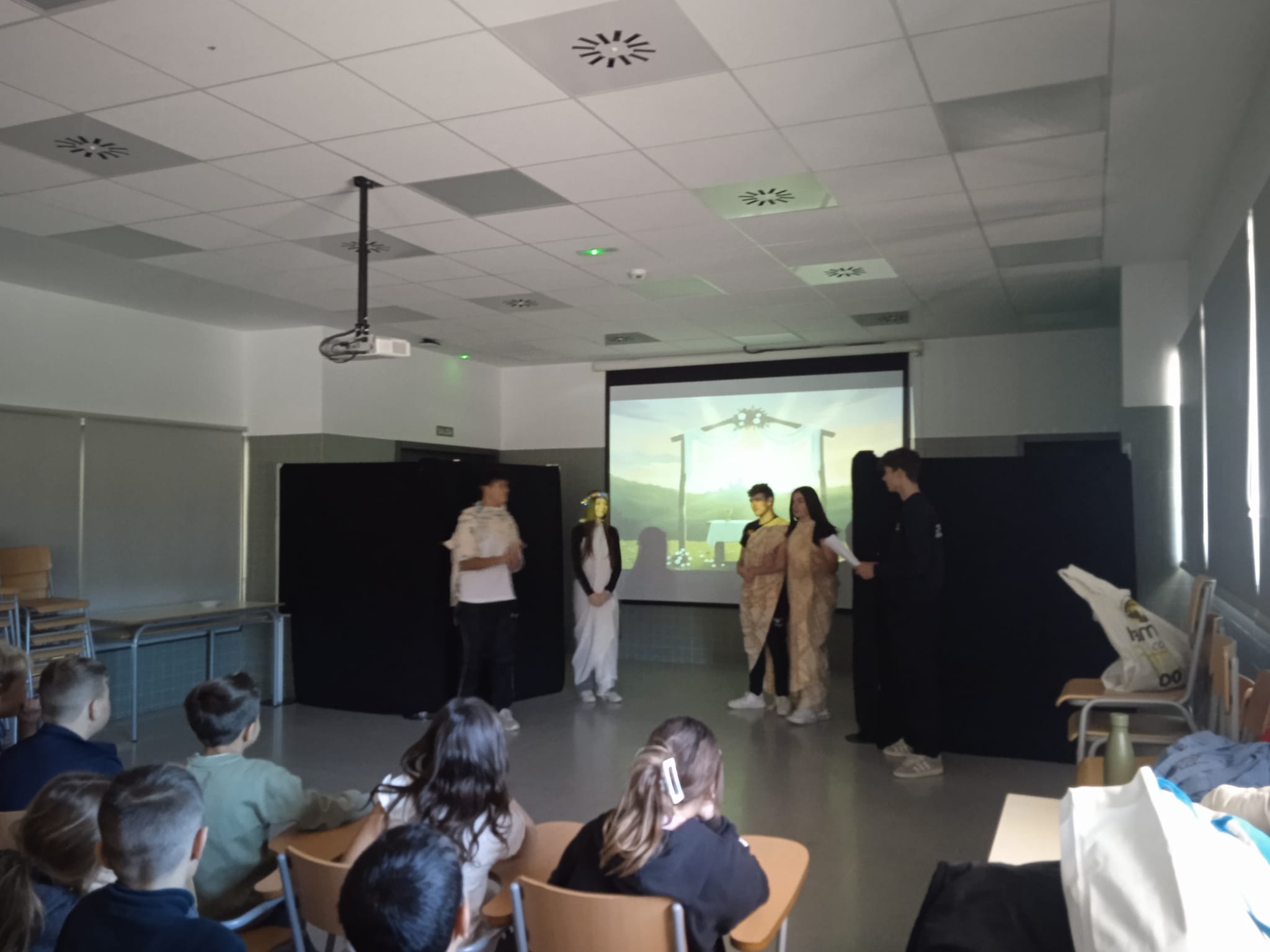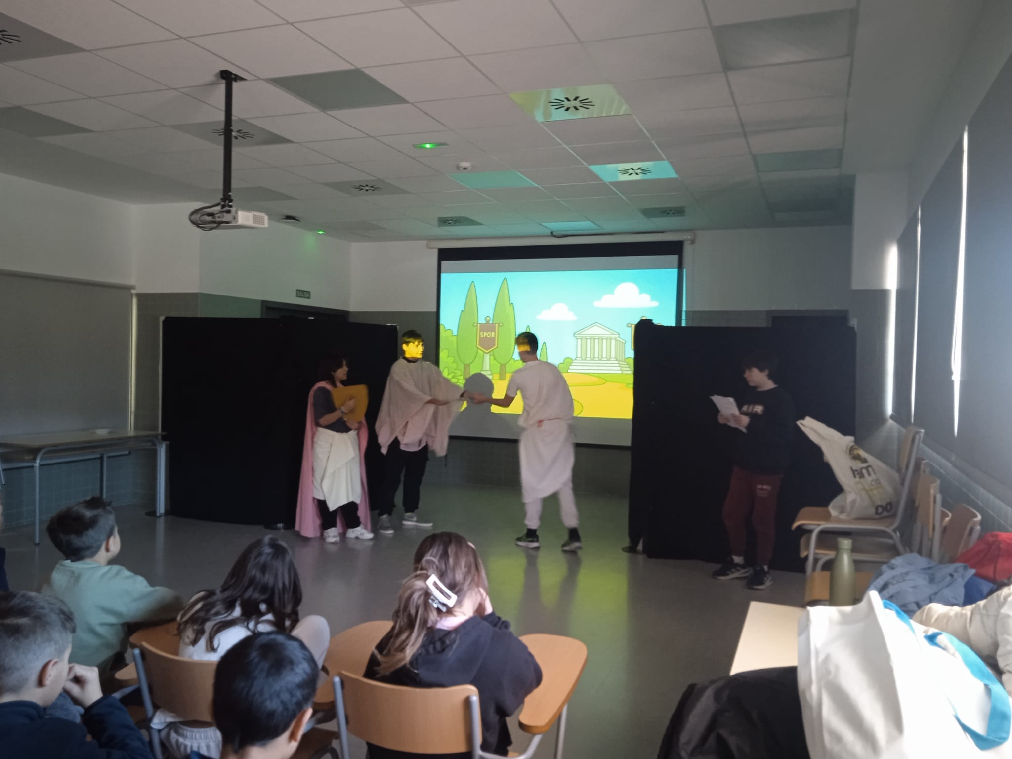 L’alumnat de 1r i 4t d’ESO d’Arts Escèniques ha ofert aquesta setmana una magnífica representació teatral destinada als nens i nenes de Primària. L’activitat ha permés als estudiants posar en pràctica els seus aprenentatges, alhora que introduïen el públic més jove en els orígens del teatre i en alguns dels mites més destacats de la cultura clàssica.