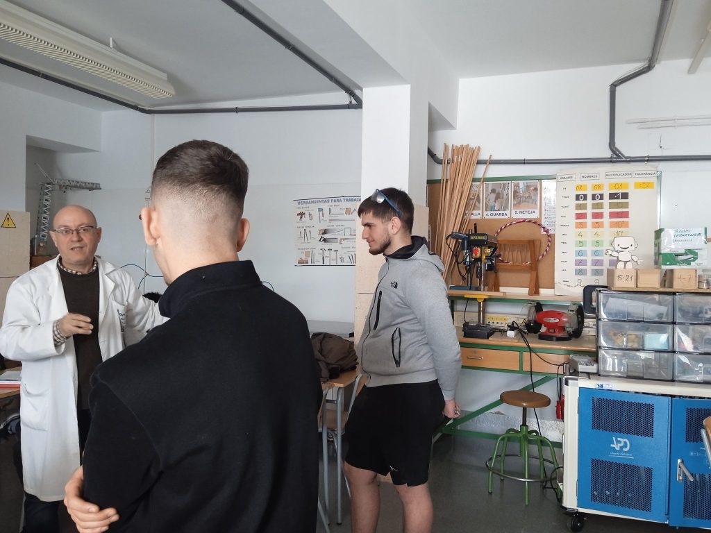 Athor Bañuls y Kees Van Eck, alumnos del ciclo formativo de grado medio Instalaciones de Producción de Calor, han construido un prototipo de una talladora de poliestireno para el departamento de Tecnología.