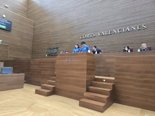 Un dels seus moments centrals de la trobada ha tingut lloc en Les Corts, on els alumnes van ocupar l’hemicicle i van presentar la seua visió d’Espanya en el seu 40 aniversari de la seua entrada a la UE. Van abordar qüestions com el mercat únic, l’arribada de l’euro (IES Sixto Marco), el futur d’Europa, la transició ecològica i el paper d’Espanya a la UE.