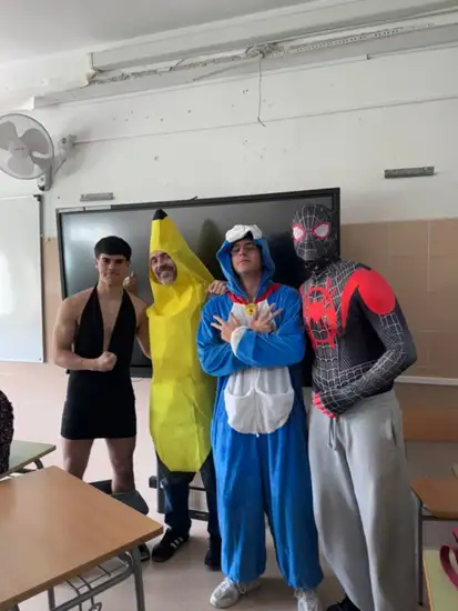 En el centro no se ha querido dejar pasar esta oportunidad y se ha organizado en pequeña escala nuestros carnavales dando un color diferente a cada día de la semana:  el lunes había que llevar calcetines diferentes, el martes la ropa del revés, el miércoles un complemento divertido, para el jueves un peinado original y el viernes ir disfrazados