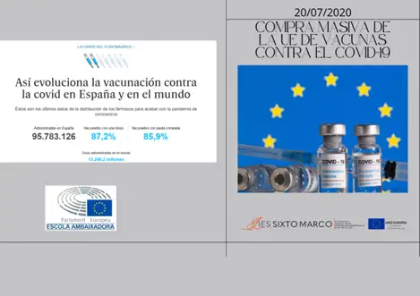 elles realitzar un vídeo que farien ells. En este vídeo s’ha arreplegat la fotografia aportada por els centres i els esdeveniments històrics que han esdevingut en els 40 anys des que Espanya ingresse a la UE realitzats por les diferents EPAS i MEPAS que hem participat. Esta MEPAS s’ha unit a tal iniciativa aportant la infografia d’un esdeveniment (la compra massiva de vacunes COVID por la UE) i la fotografia de la Felicitació de Nadal. La nostra fotografia i vídeo ha sigut aprofitat per a difondre-la en les nostres xarxes i entre l’alumnat i professorat del centre.