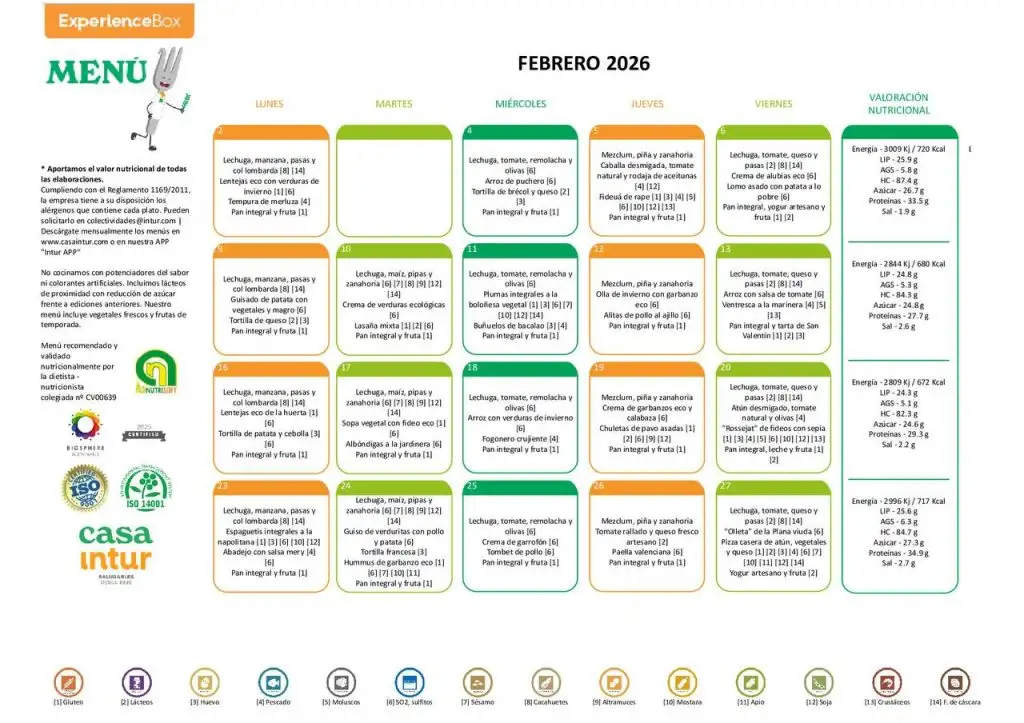 MENÚ FEBRERO 2026