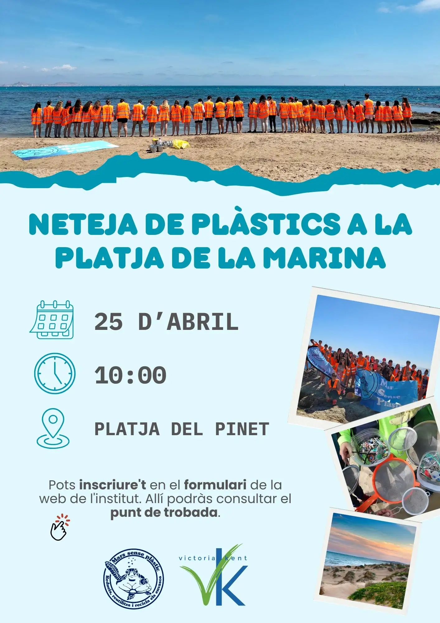 Desde el equipo de Mar Sense Plàstic os invitamos a participar en una nueva actividad de voluntariado ambiental, una de las más tradicionales del proyecto: la limpieza de plásticos en la Playa del Pinet, en La Marina 🌞🌊.