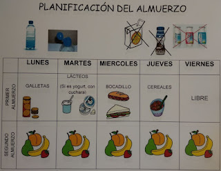 Això és alguna cosa que els mestres estem veient des de fa anys. Por això, per a intentar millorar i procurar que els nostres alumnes no porten sempre el pastelito con el crom, tradicionalment s’ha elaborat una taula d’esmorzars variats per a cada dia de la setmana com el que veieu a la dreta. Dilluns: fruita, martes: lacti, dimecres: entrepà, etc.