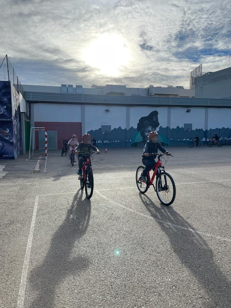 El passat dijous, en una sessió de l’àrea d’Educació Física, l’alumnat de 5é i 6é va participar en el projecte “Aula Ciclista”. Formem part d’aquest projecte gràcies a pertànyer a la xarxa de centres CEPAFE (centres educatius promotors de l’activitat física i l’esport). Persones especialitzades, que formen part de la Federació de ciclisme, van ensenyar a l’alumnat a millorar la seua circulació i conducció en bicicleta. En aquesta ocasió, el recorregut es va desenvolupar al nostre pati, per tal de preparar la següent sessió que ja es desenvoluparà en els carrers propers a la nostre escola.