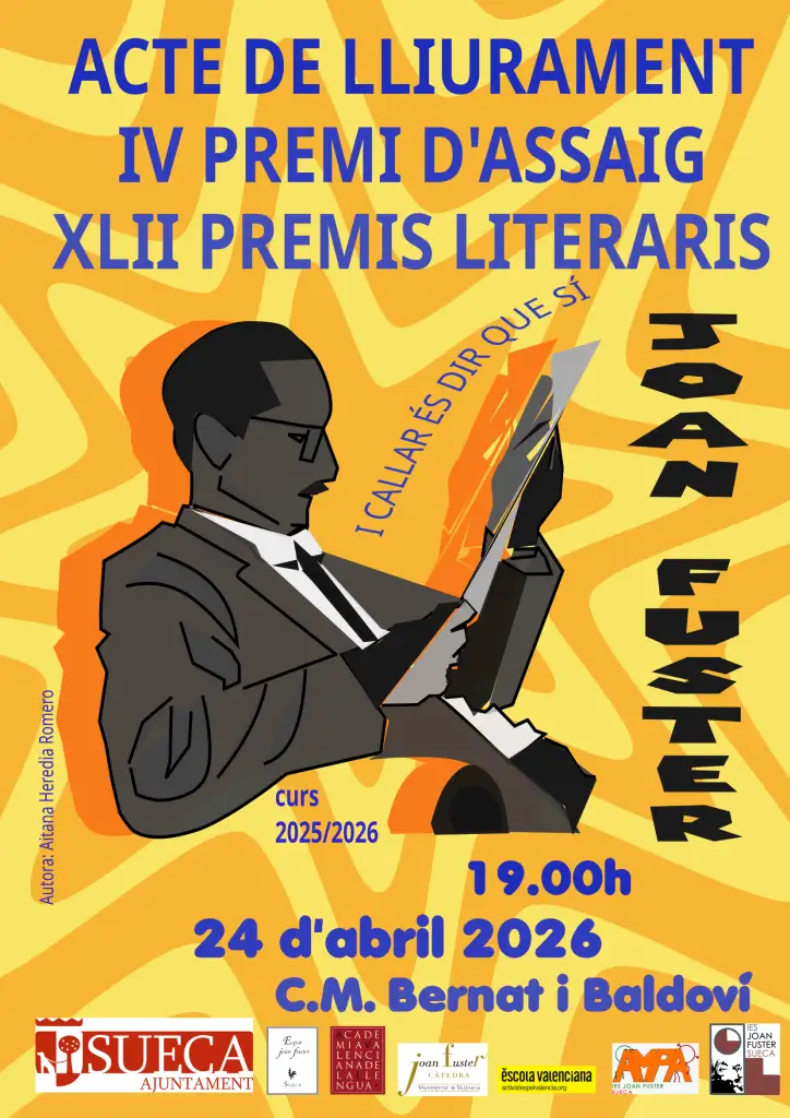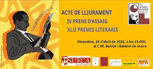 El divendres 24 d’abril de 2026, a les 19.00h, començarà l’acte de lliurament dels Premis Literaris Joan Fuster en les seues diverses modalitats: assaig, narrativa, poesia i teatre.