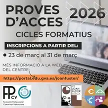 #ProvesAccés2026 #FPprimeraopció #FormacióProfessional #CiclesFormatius #IESJoanFuster #Sueca #Educació #FuturProfessional #GVA #FPCV
