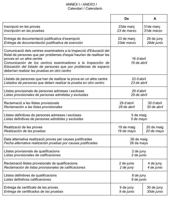 Si vols realitzar les Proves d’accés a Cicles Formatius de Grau Mitjà i Grau Superior, a continuació pots trobar les dates més importants: