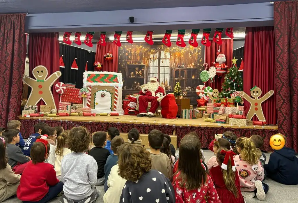 Recibimos como ya es costumbre en nuestro colegio la visita de Papá Noel, con un decorado privilegiado realizado por el AFA del centro. El alumnado disfrutó mucho y entonó villancicos populares en esta visita tan especial.