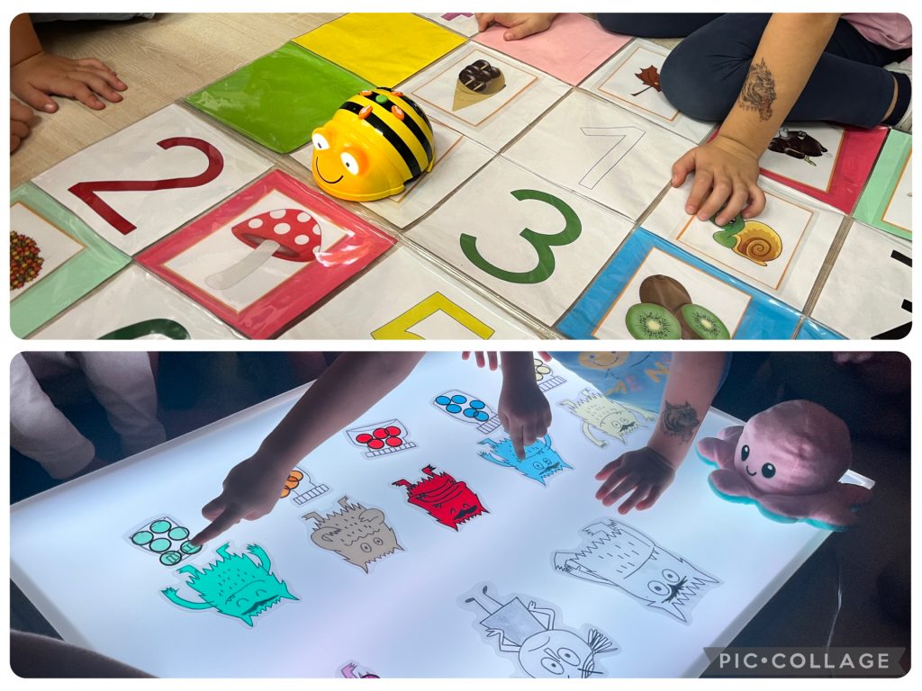 En les sessions de Valencià, aprenem de manera vivencial i divertida. A través del joc amb el robot Bee-Bot treballem el vocabulari de la tardor i la seqüenciació, mentres que amb la taula de llum descobrim els colors i les emocions amb el Monstre de Colors. Una manera lúdica d’acostar-nos a la llengua i gaudir aprenenta!