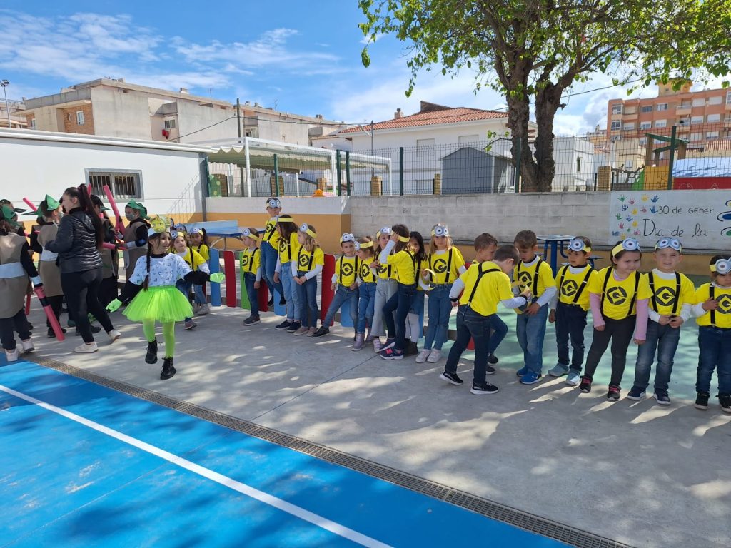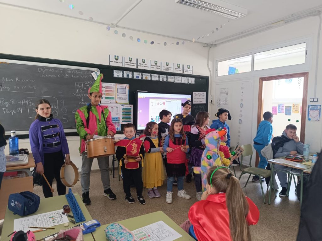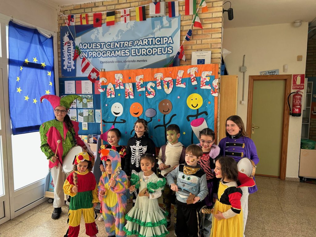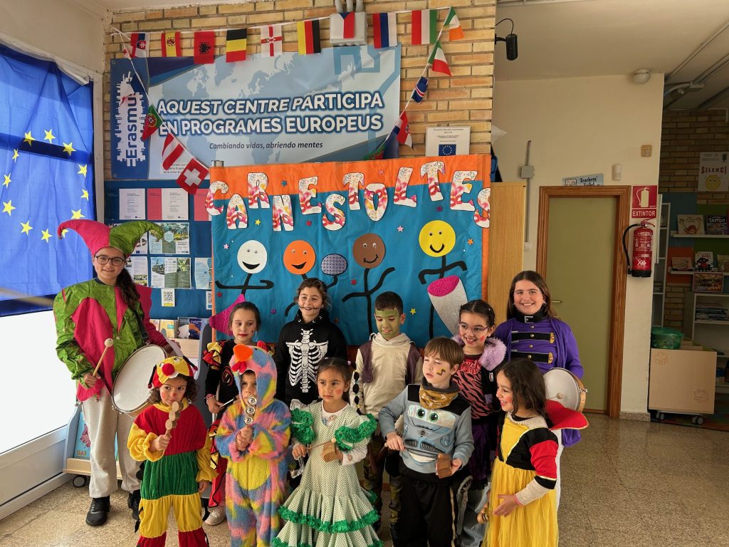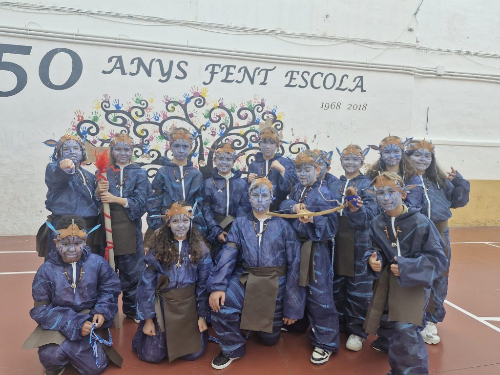 Finalment, a les 13:00 h, vam eixir al carrer per a celebrar el tradicional desfilada de Carnaval pels carrers del poble. A ritme de música i amb la batucada de cinquè i sisè, tots junts vam ballar i gaudir d’un passacarrer ple de color i diversió. Totes les disfresses, incloent les del professorat, estaven ambientades en el nostre Projecte LIFE, fent encara més especial aquesta festa.