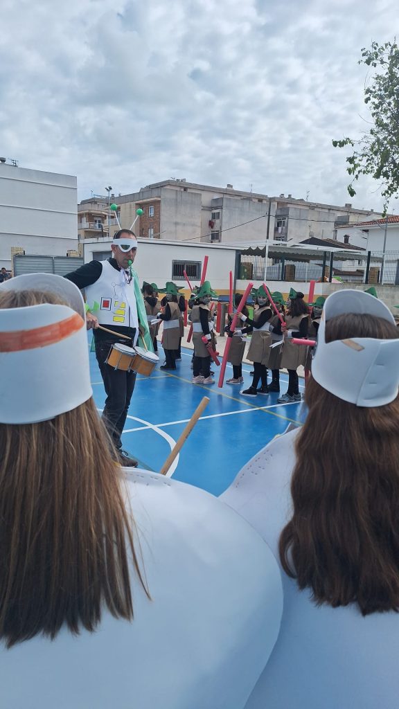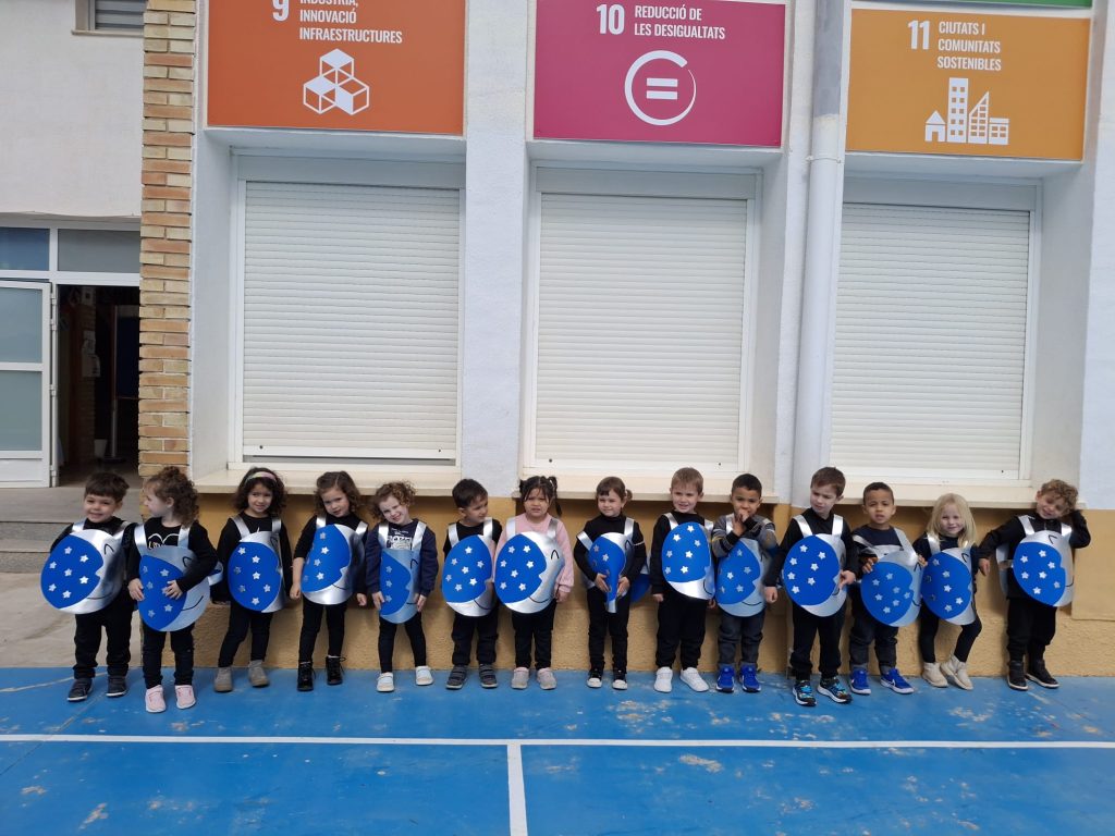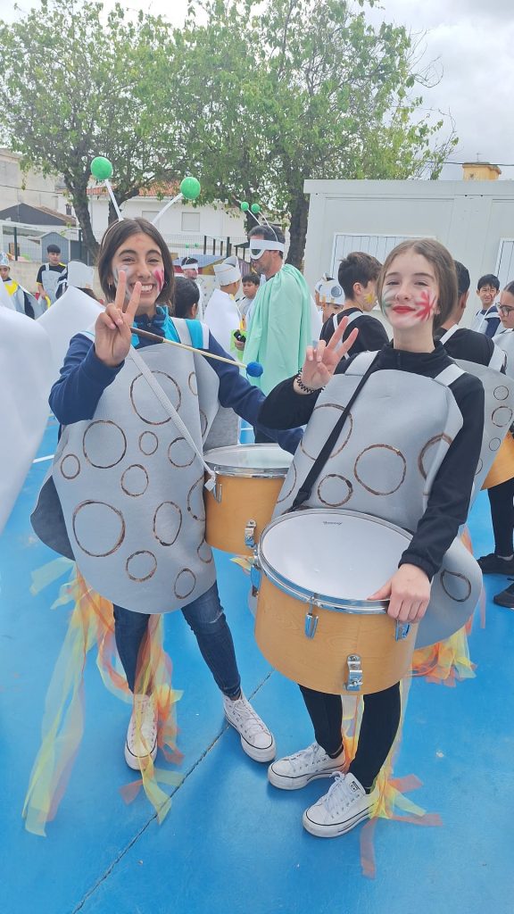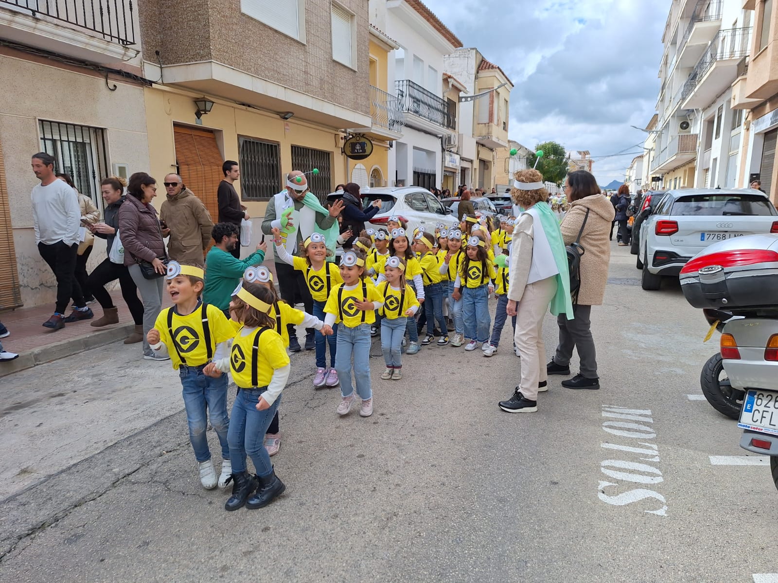 Finalment, a les 13:00 h, vam eixir al carrer per a celebrar el tradicional desfilada de Carnaval pels carrers del poble. A ritme de música i amb la batucada de cinquè i sisè, tots junts vam ballar i gaudir d’un passacarrer ple de color i diversió. Totes les disfresses, incloent les del professorat, estaven ambientades en el nostre Projecte LIFE, fent encara més especial aquesta festa.