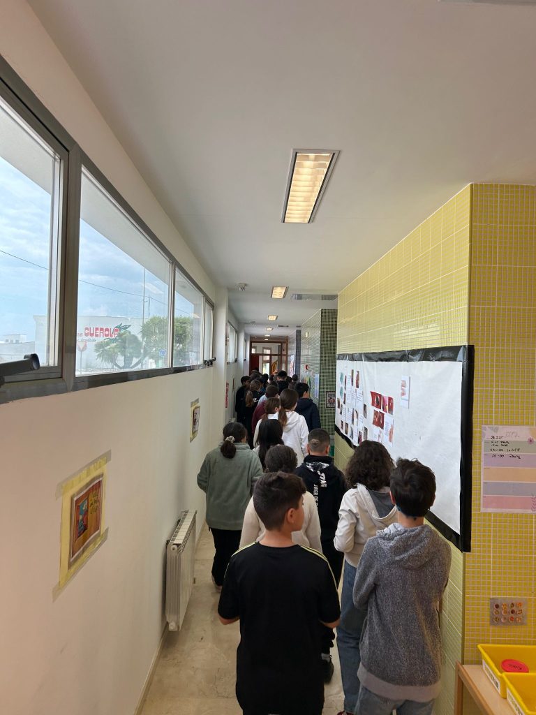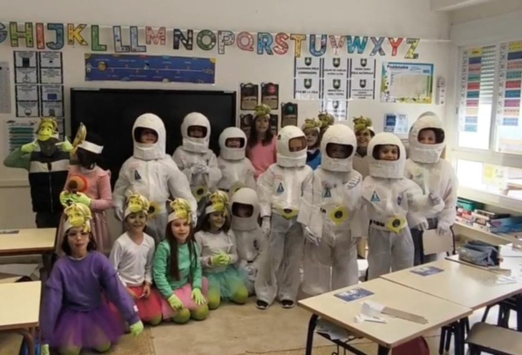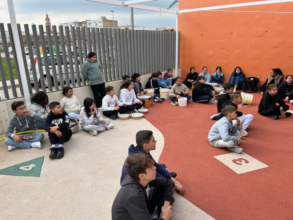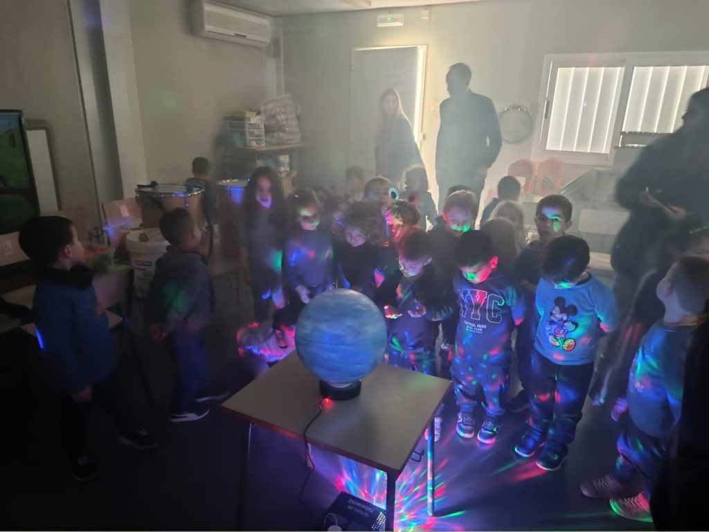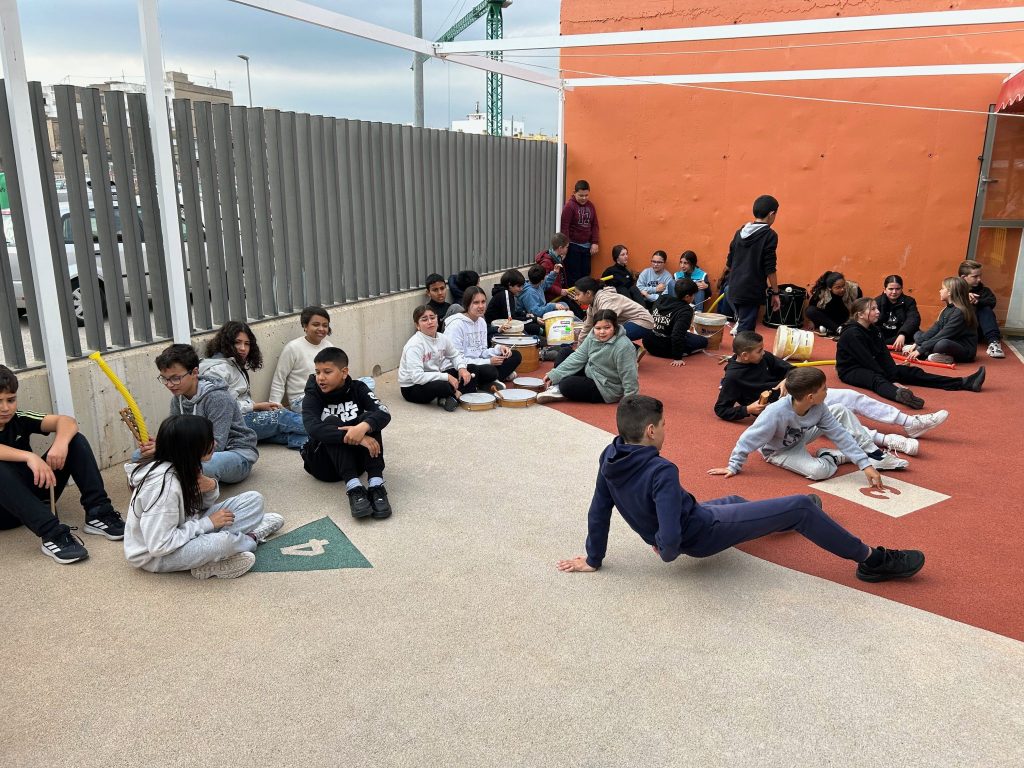 La jornada va començar amb la tradicional visita de l’alumnat de cinquè i sisè a l’escoleta, on amb una vibrant batucada van sorprendre i animar els més menuts. A més, els xiquets i xiquetes de l’escoleta i les seues educadores ens van preparar una sorpresa molt especial: un xicotet aperitiu en una sala ambientada amb llum ultraviolada que simulava un espai sideral.