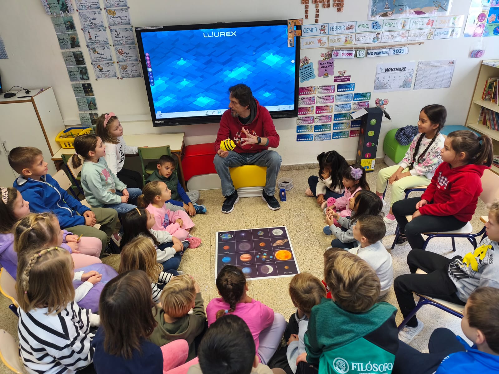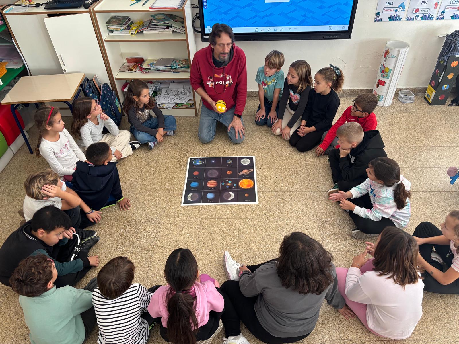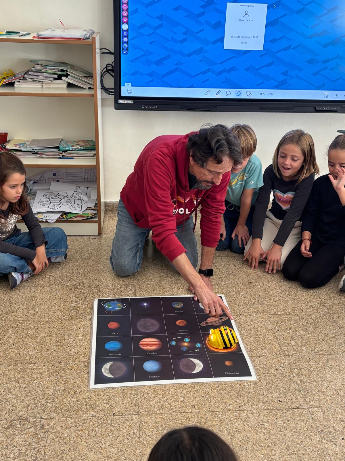 Amb espais delimitats per cursos, els xiquets i xiquetes havien de trobar peces amagades que representaven planetes, i col·locar-les al mural corresponent de cada classe. Poc a poc, cada grup se’n ha adonat d’un detall sorprenent: tots els murals estaven incomplets… faltava una peça clau!