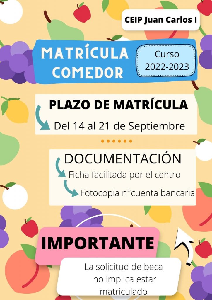 Aquí os dejamos la información del calendario con respecto a la matrícula del próximo curso que se realizará de manera telemática.