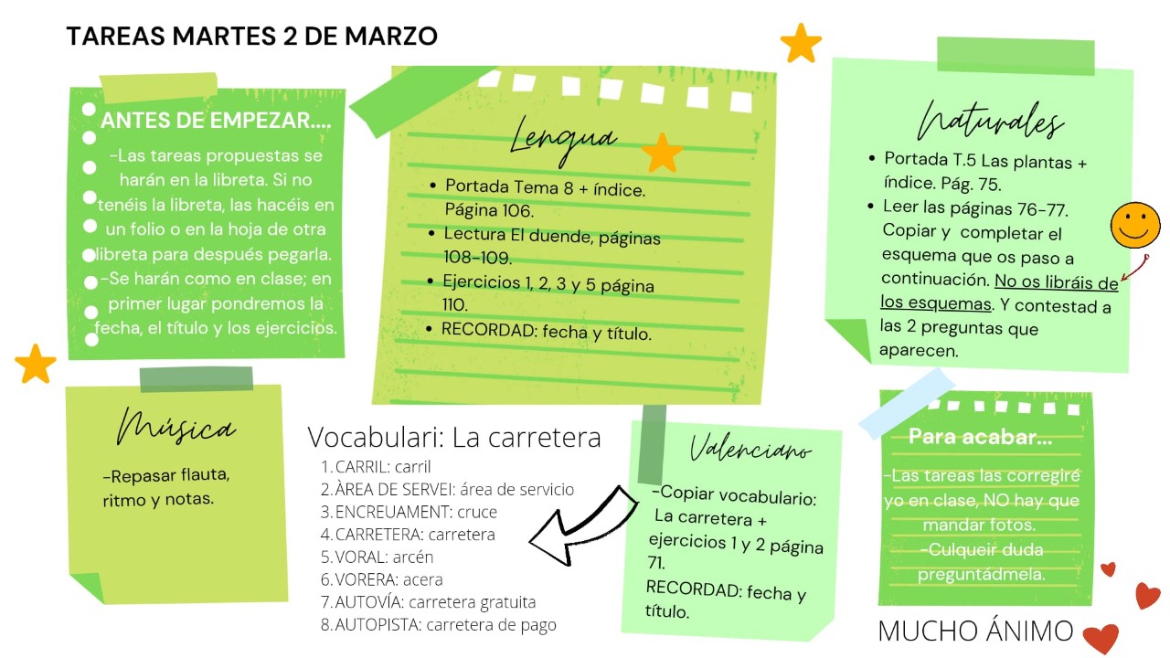 Aquí están las tareas programadas para los alumnos y alumnas en cuarentena. Un saludo.