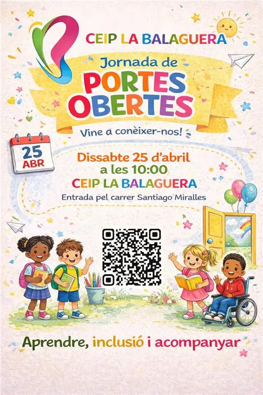 Ja tenim ací la Jornada de Portes Obertes al nostre centre. Si vols vindre a conèixer la nostra escola, apunta’t fent clic a la imatge o escanejant el QR: