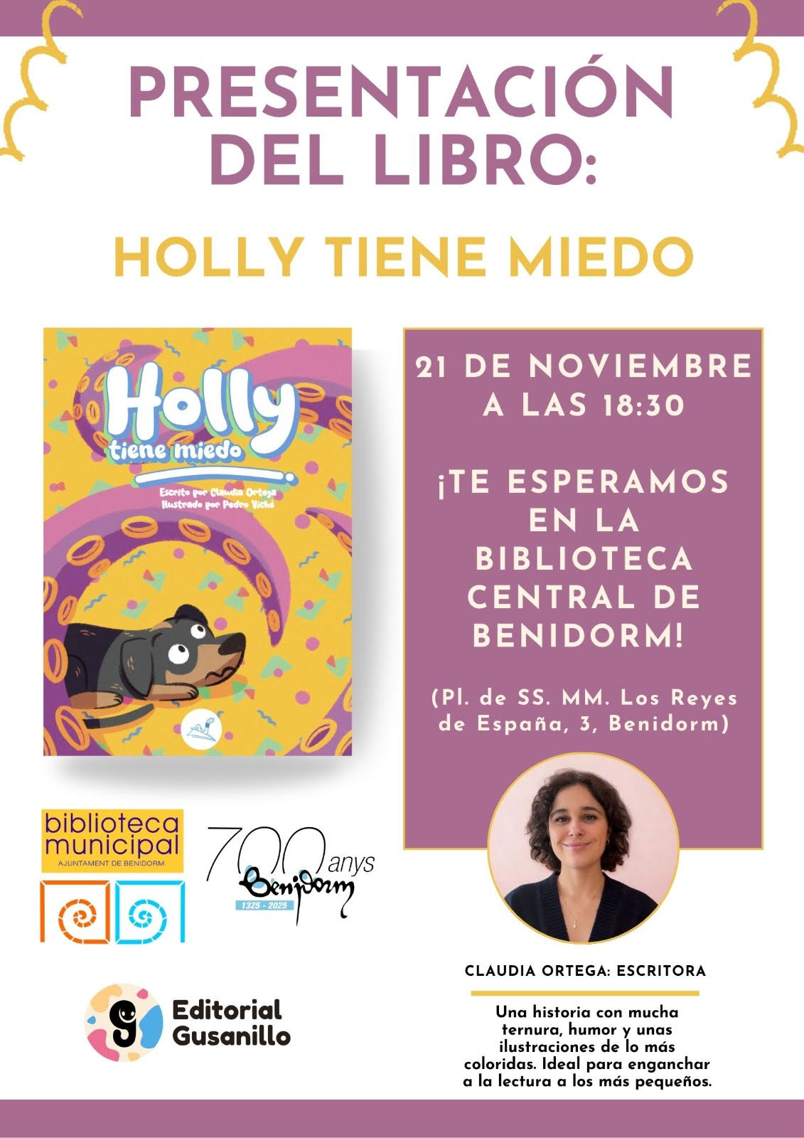 El próximo día 21 de noviembre, en la Biblioteca Central de Benidorm se va a hacer la presentación de un cuento: Holly tiene miedo. Un cuento emocionante, educativo y divertido, perfecto para niños que están aprendiendo a gestionar la ansiedad, a valorar la amistad y a comprender que la valentía también se aprende. Al leer sobre cómo Holly tiene temor, los pequeños pueden relacionarse con sus propias experiencias y aprender a manejarlas.