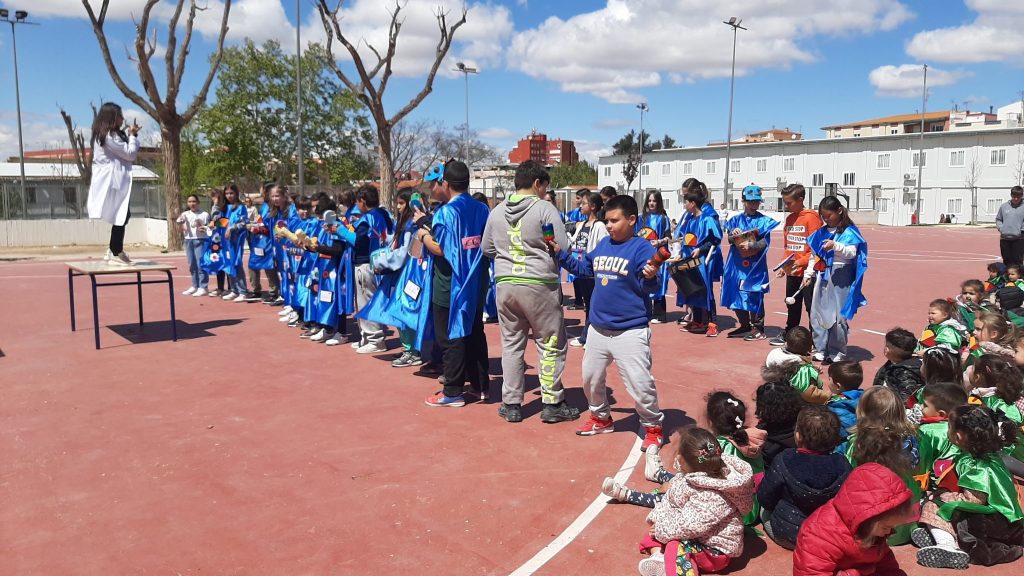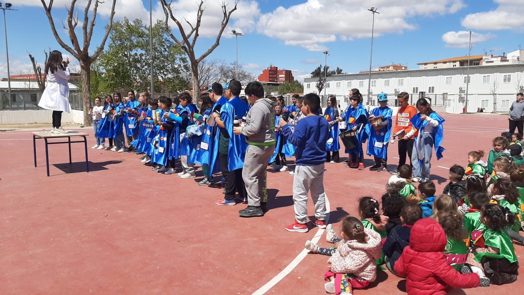 El miércoles 16 de abril de 2025 se celebró el esperado fin de fiesta de las XXX Jornadas Culturales sobre la Ciencia y la Tecnología, un evento que durante todas las jornadas ha llenado el centro de talleres, exposiciones, experimentos y charlas inspiradoras. La clausura estuvo a la altura de la celebración: una gran batucada protagonizada por todo el alumnado inundó el patio central con ritmo, alegría y mucho color. Ese colorido de los disfraces diseñados por nuestra AMPA que siempre está dispuesta a colaborar con el centro.