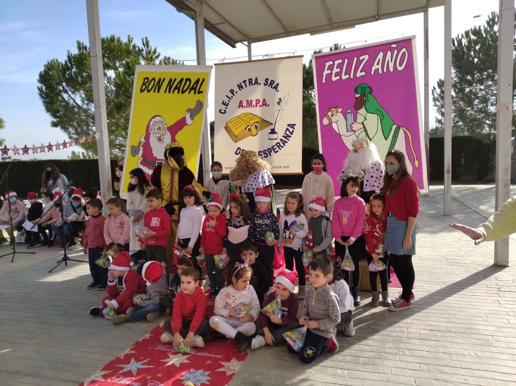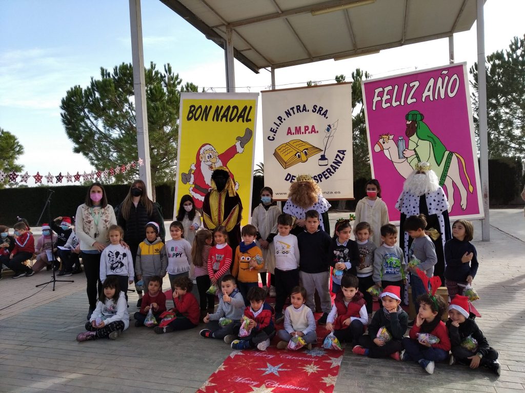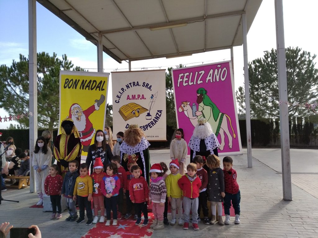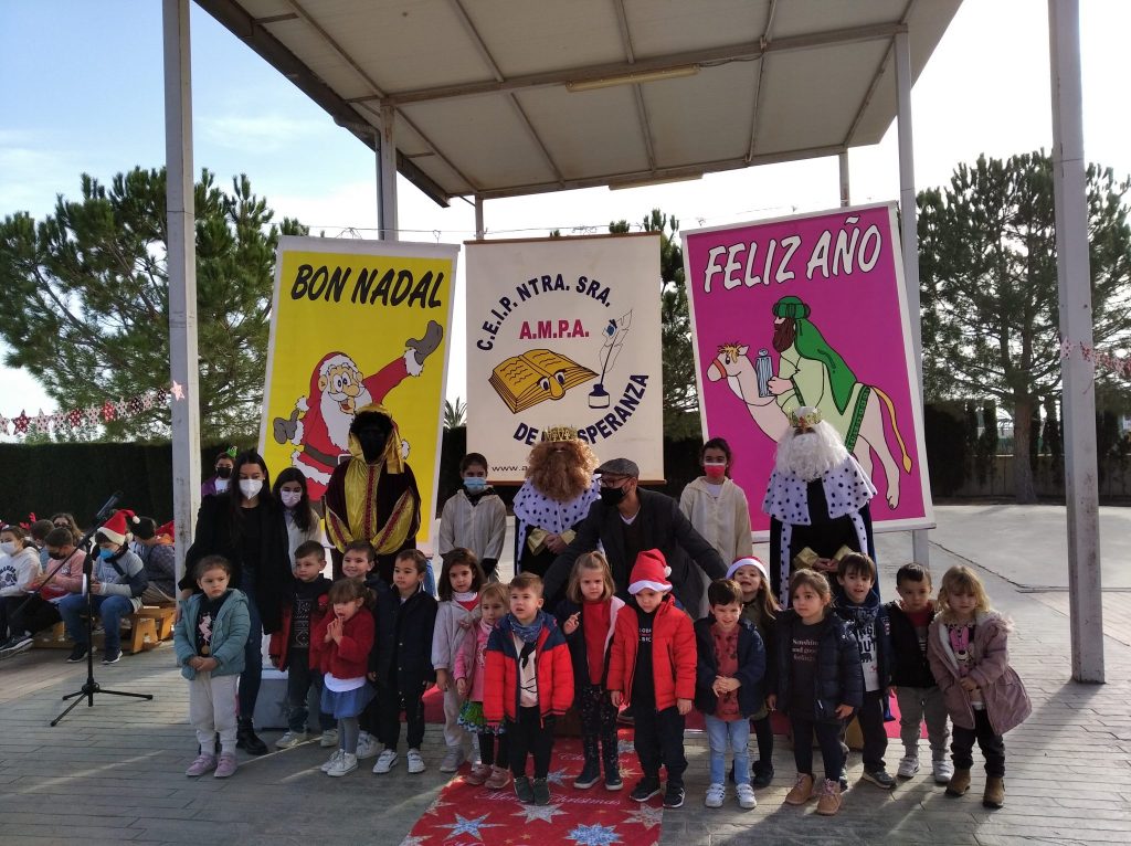Una vegada entregades les cartes a les seues Majestats i llegits els desitjos, li va tocar el torn a l’alumnat d’Educació Infantil, acompanyat pels cursos de 5é que van actuar com a cor.