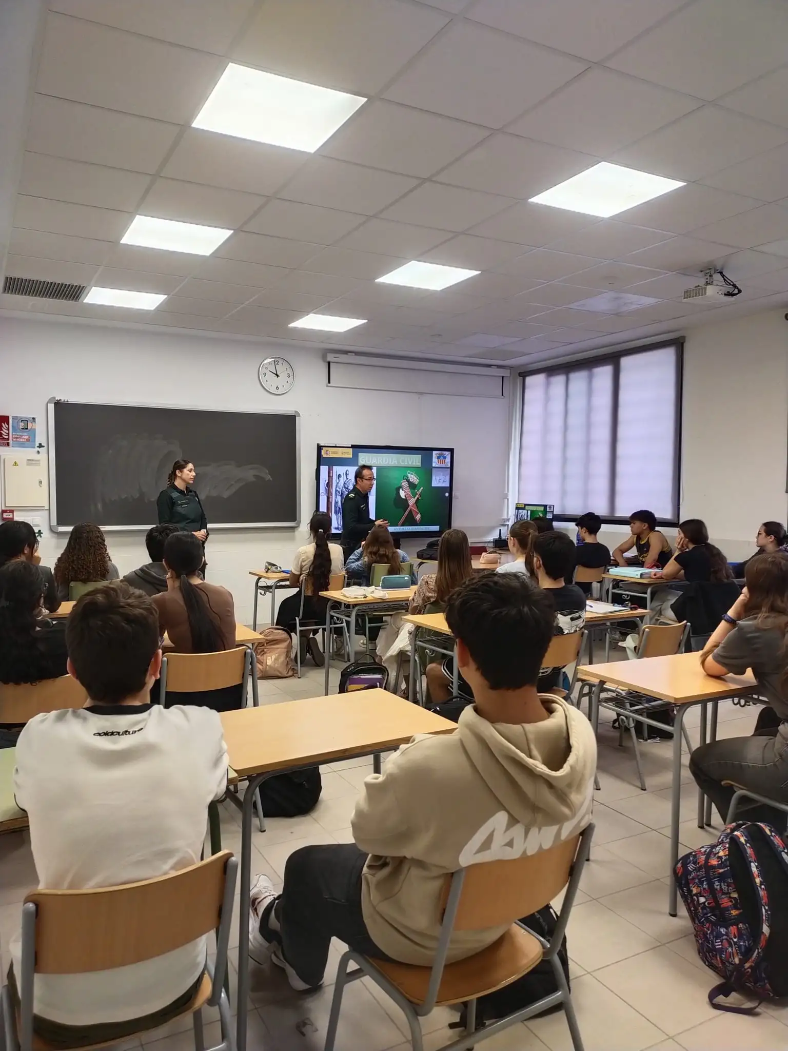 El passat 23 d’abril vam rebre la visita de dos agents de la Guàrdia Civil que van fer una xarrada adreçada a l’alumnat de 1r de Batxillerat sobre aquest cos de seguretat pública. L’objectiu era donar-lo a conèixer i explicar les vies d’accés en cas que algú estiguera interessat. Aquesta activitat ha estat organitzada pel departament d’Orientació.