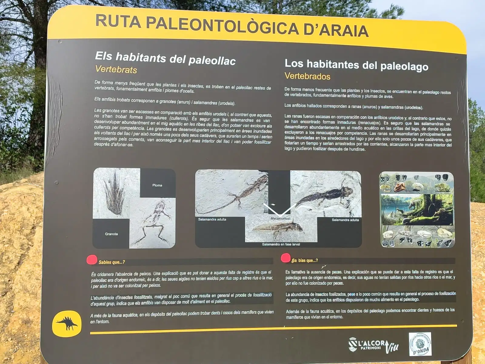 La ruta és un recorregut de poc més de 2 km que ens transporta al període Miocé (fa 16-19 milions d’anys). Esta ruta destaca pels seus jaciments amb abundants fòssils de plantes, mol·luscs, amfibis i vertebrats en un entorn natural prop de la pedania d’Araia.