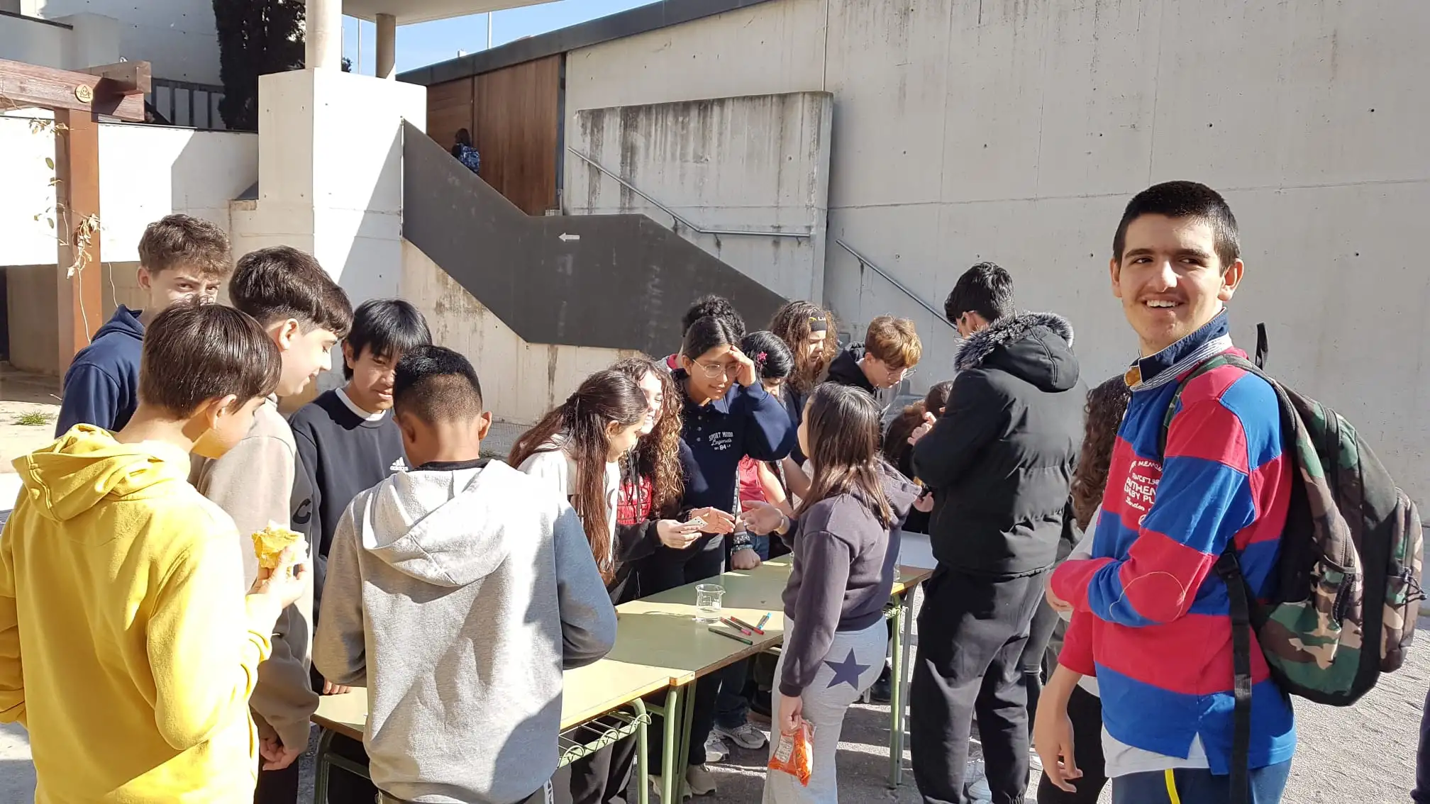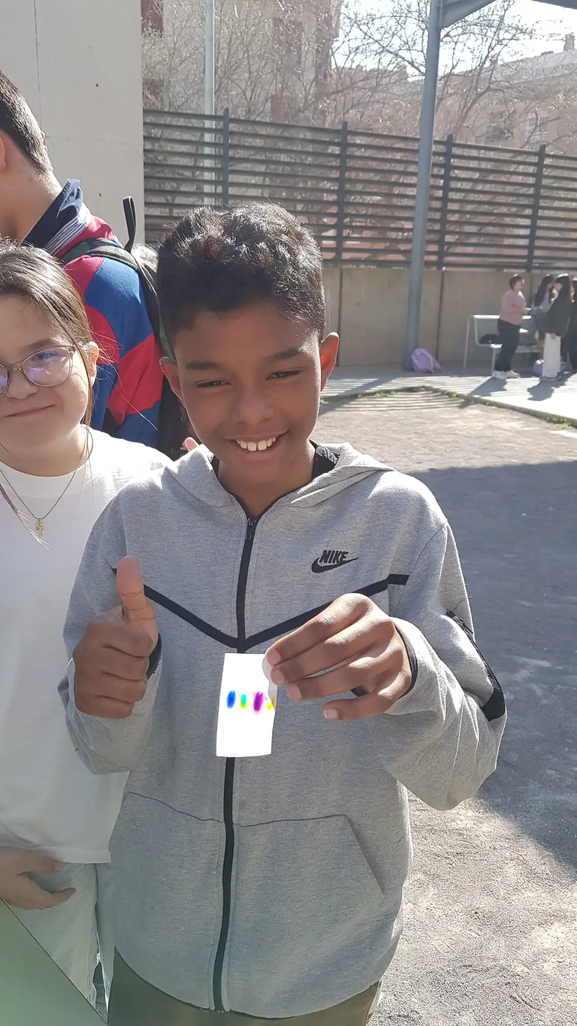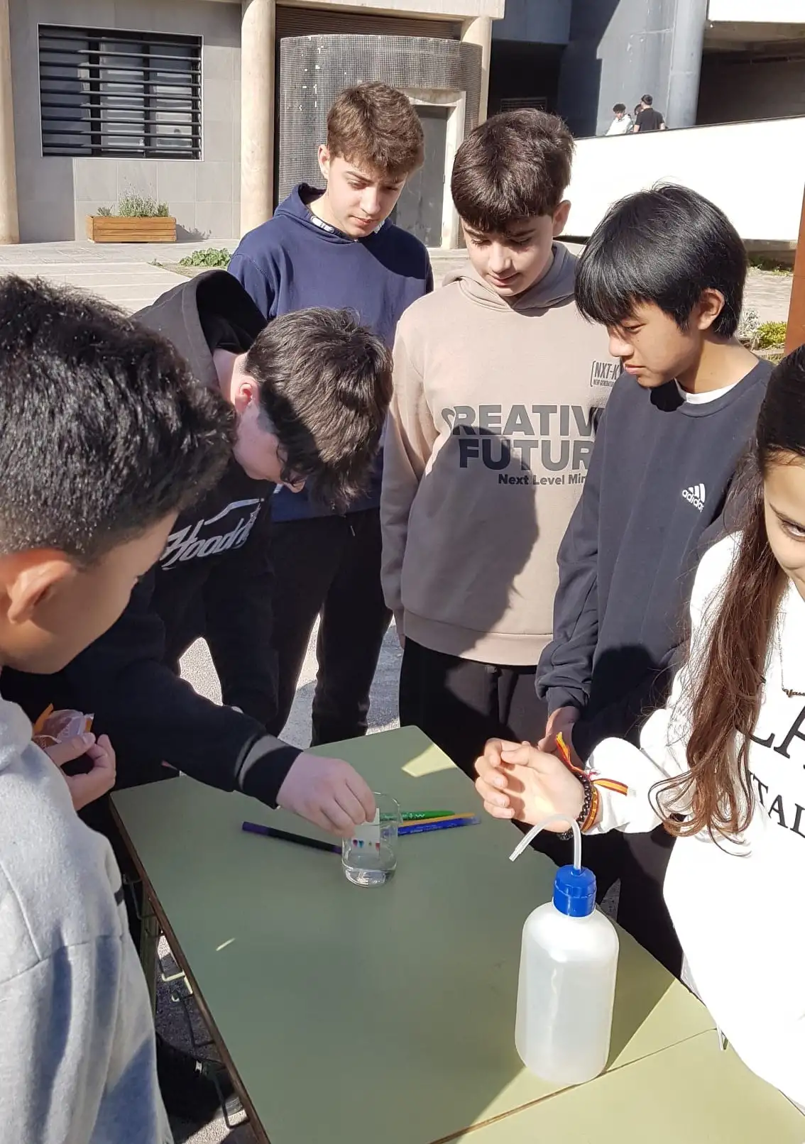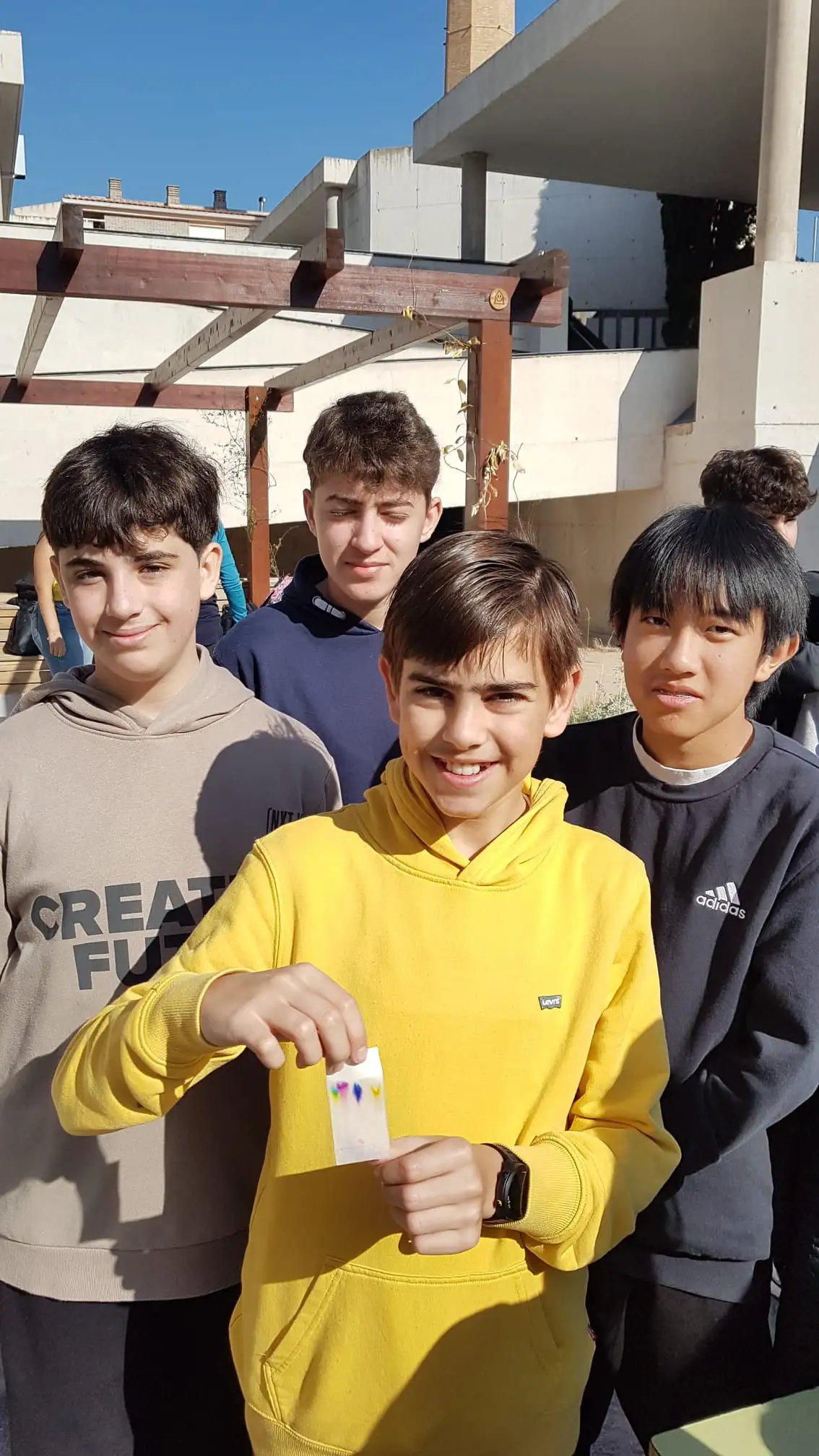 L’alumnat de l’optativa de 2n d’ESO Taller d’aprofundiment de Física i Química han organitzat un pati lúdic on els alumnes que volien podien realitzar una cromatografia per separar els components de tintes.