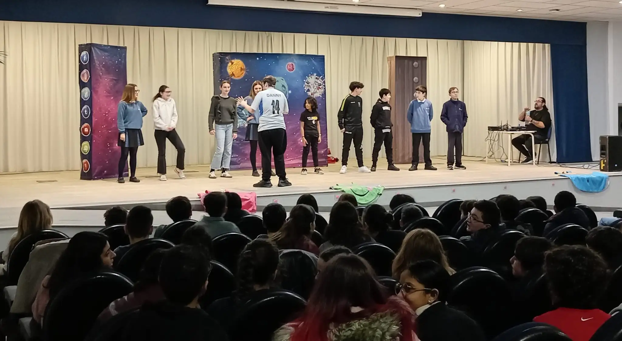 L’alumnat de 1r i 2n d’ESO del centre va tindre l’oportunitat d’assistir a l’obra de teatre Emojis, de Fòrum Teatre, escenificada íntegrament en anglés. L’obra tractava dels malentesos en les relacions interpersonals per utilitzar emojis en lloc de les paraules. Una manera lúdica i divertida de treballar la comprensió oral en llengua anglesa.