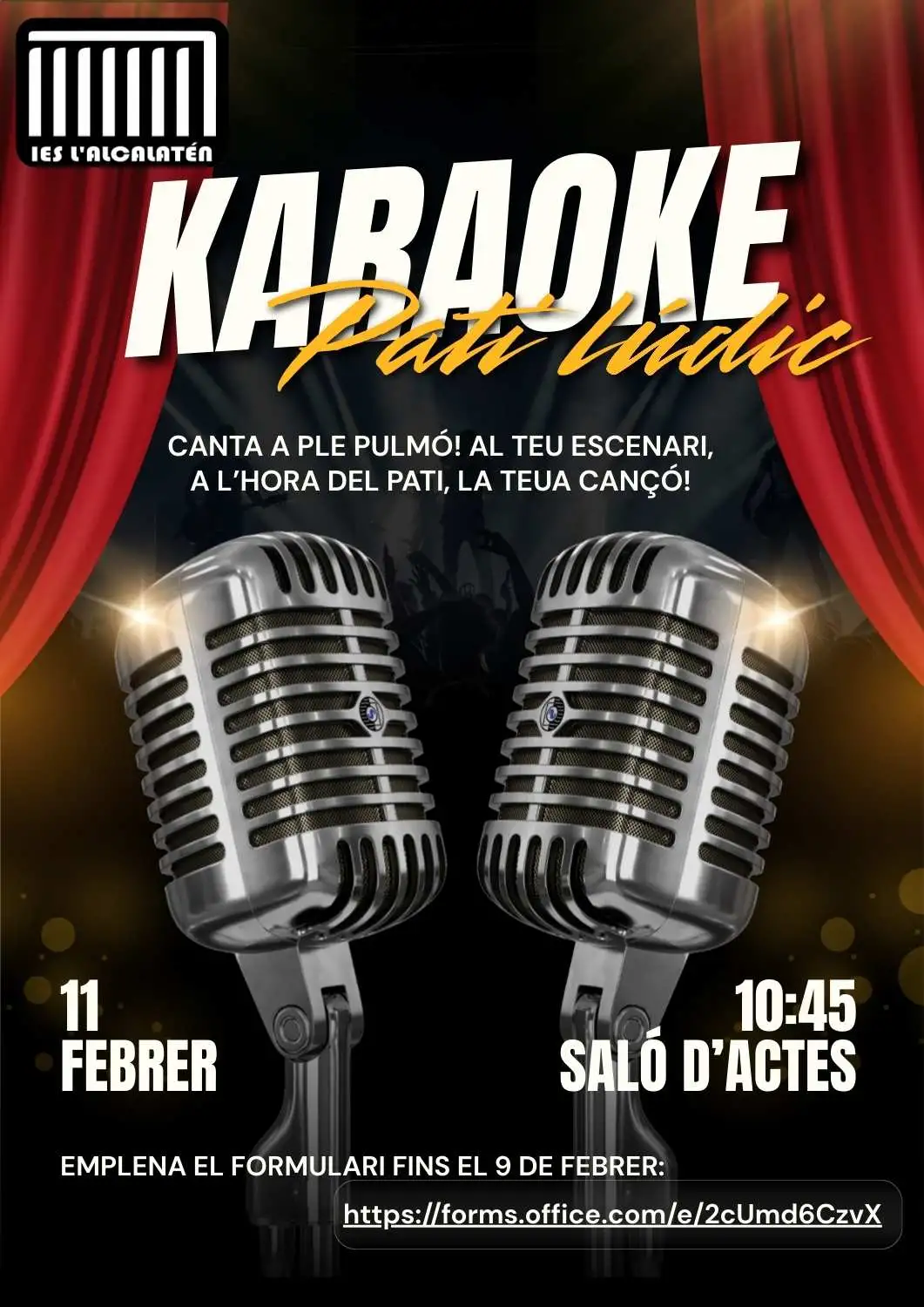 FORMULARI: KARAOKE AL SALÓ D’ACTES – DIMECRES 11 F FEBRER A L’HORA DEL PATI
