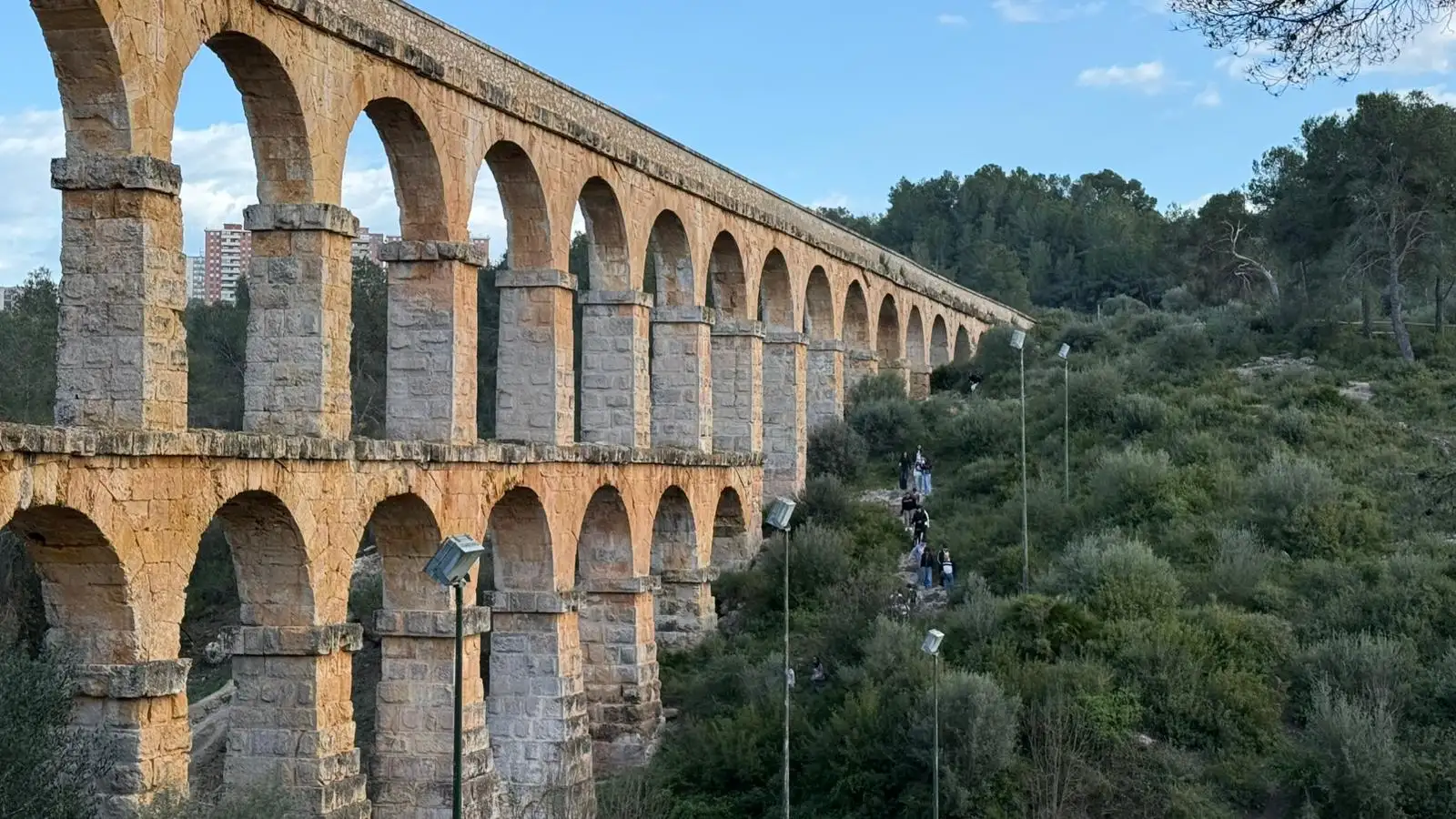 L’última parada del dia va ser a l’aqüeducte de Ferreres, ja de tornada a casa. Es tracta d’un dels aqüeductes romans més notables i ben conservats del món. Conduïa l’aigua del riu Francolí fins a la ciutat de Tàrraco. Segons la major part d’historiadors va ser construït al segle I dC, en època de l’emperador August, i va estar en funcionament fins a l’edat mitjana. Està fet de carreus regulars lleugerament encoixinats i col·locats en sec, sense cap argamassa. Té dos nivells d’arcades, amb 11 arcs al nivell inferior i 25 al superior. La llargària total és de 217 m i l’alçada màxima de 27 m.