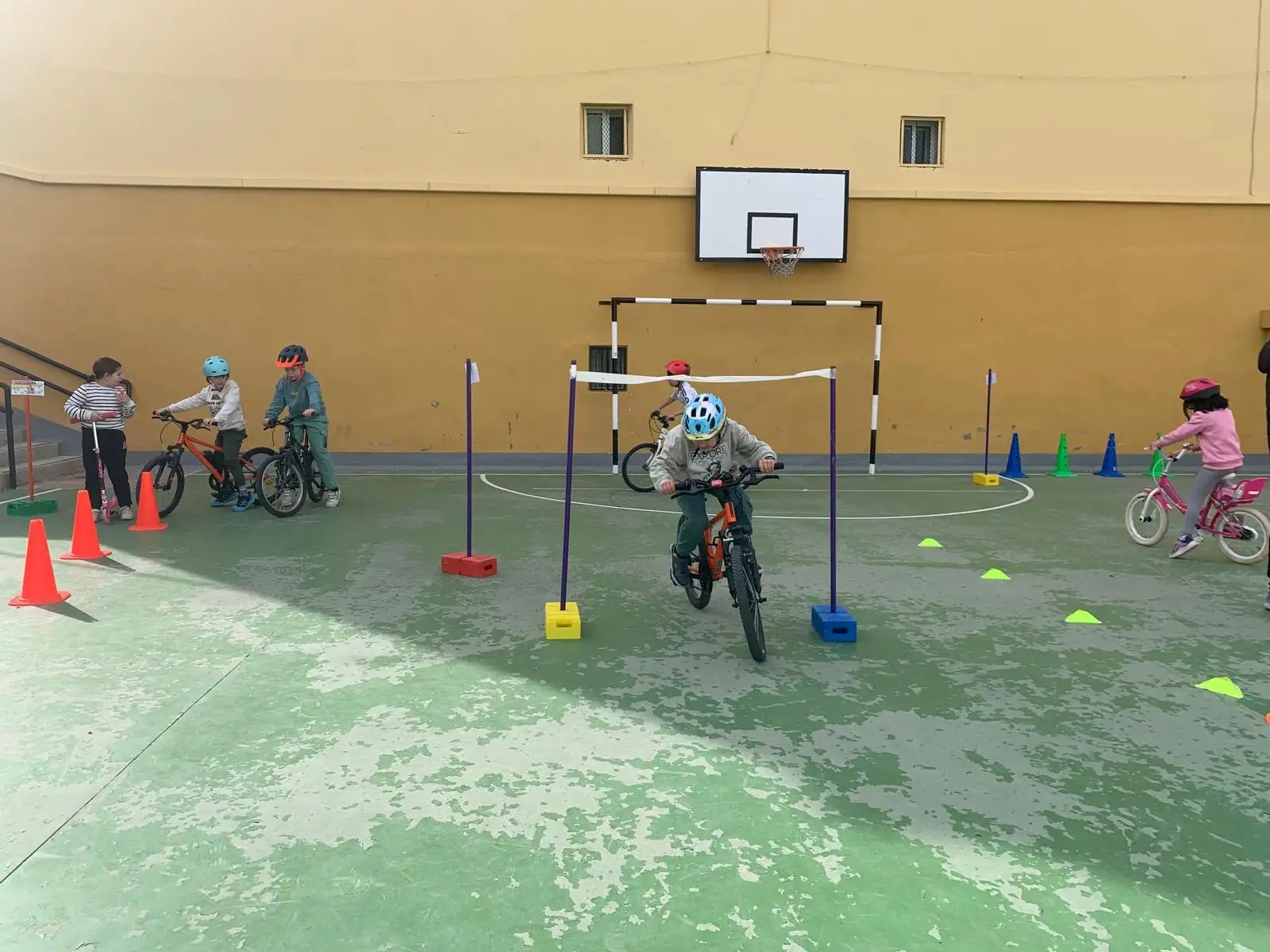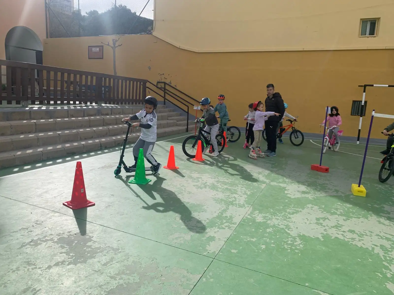 La actividad ha consistido en un recorrido con diferentes estaciones y pruebas diseñadas para trabajar habilidades motrices. El alumnado ha participado trayendo sus propios medios de transporte: bicicletas, patines y patinetes.