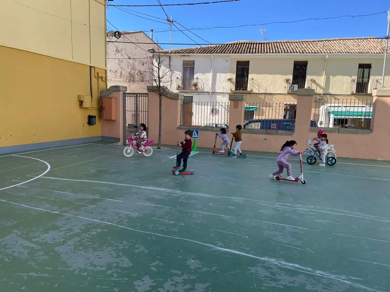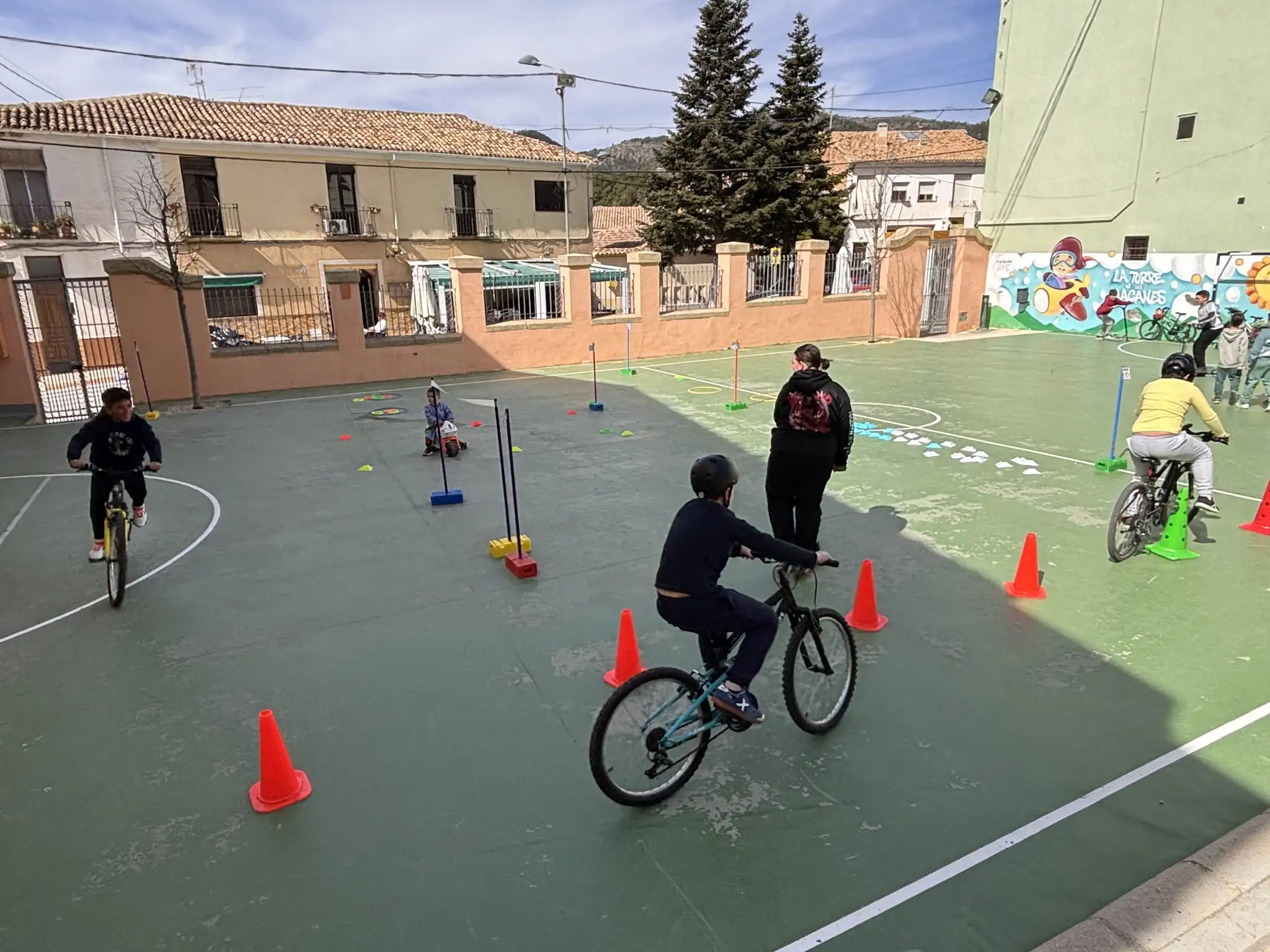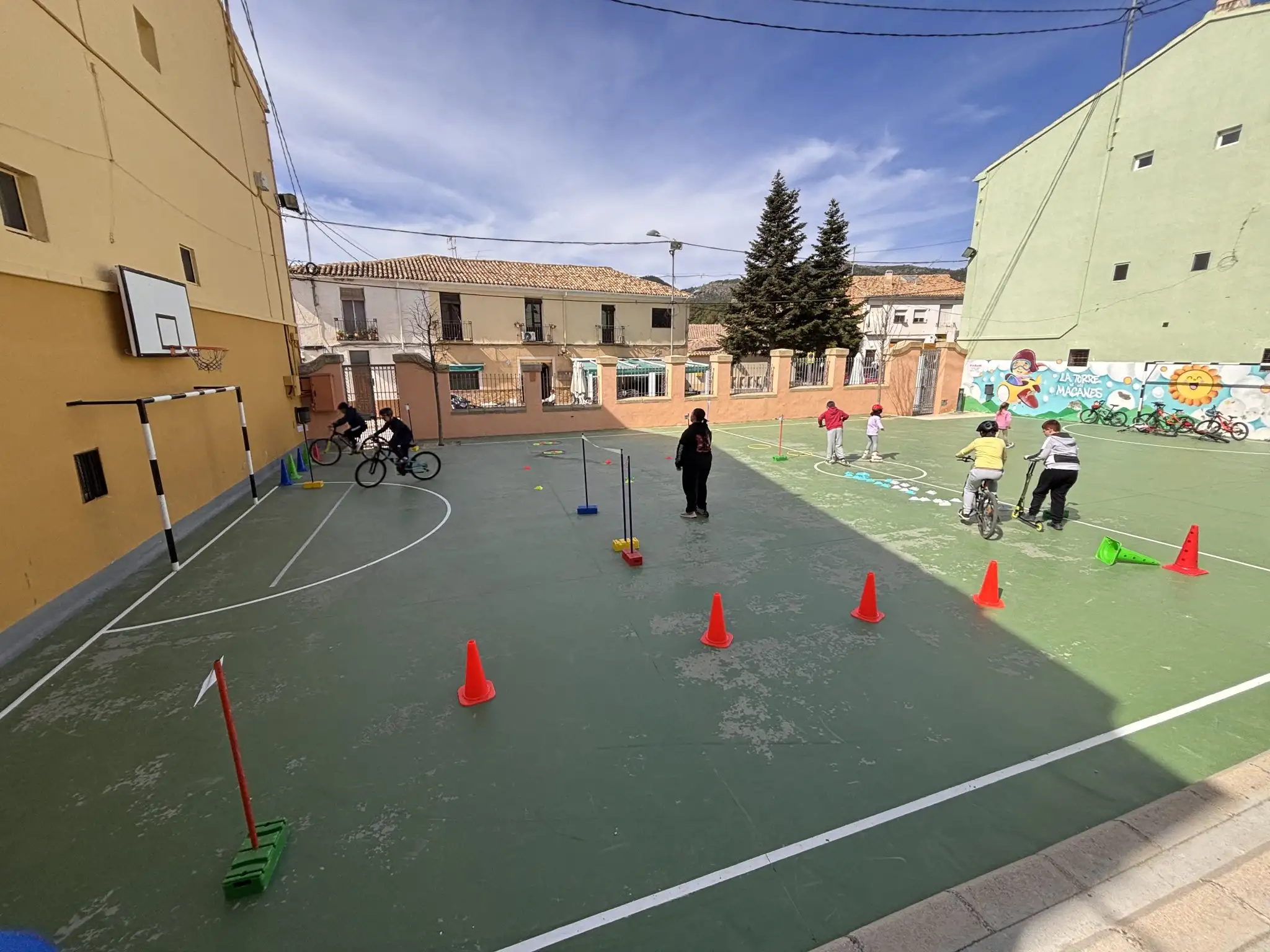 En nuestro centro seguimos apostando por iniciativas que fomentan el juego activo, la convivencia y el aprendizaje compartido. Esta semana hemos puesto en marcha una actividad muy especial para dinamizar el patio: la creación de un circuito vial para que los más pequeños puedan disfrutar con sus bicicletas, patinetes y patines que han traído de casa.