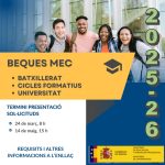 CONVOCATÒRIA BEQUES CURS 25-26 ENSENYANCES POSTOBLIGATÒRIES