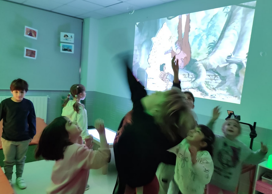 Divendres passat, els alumnes de 2n de primària vam tindre l’oportunitat de viure una aventura a la selva dins de la nostra aula multisensorial, i més concretament una experiència inmersiva relacionada amb “El llibre de la selva”.